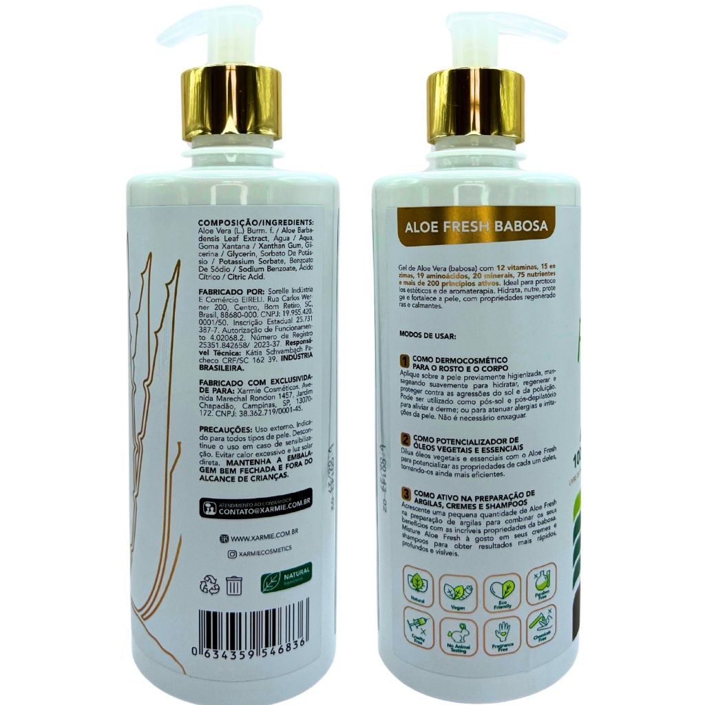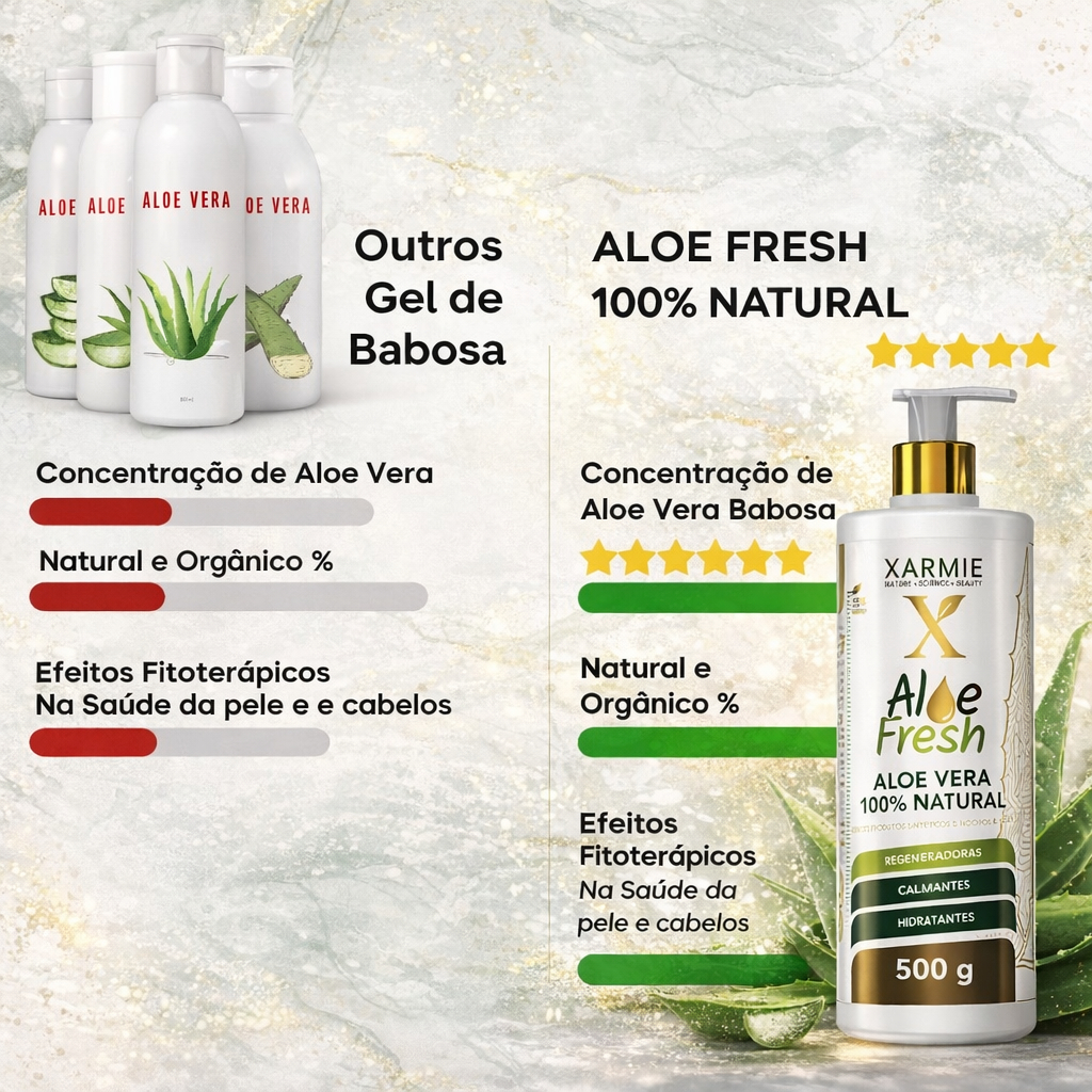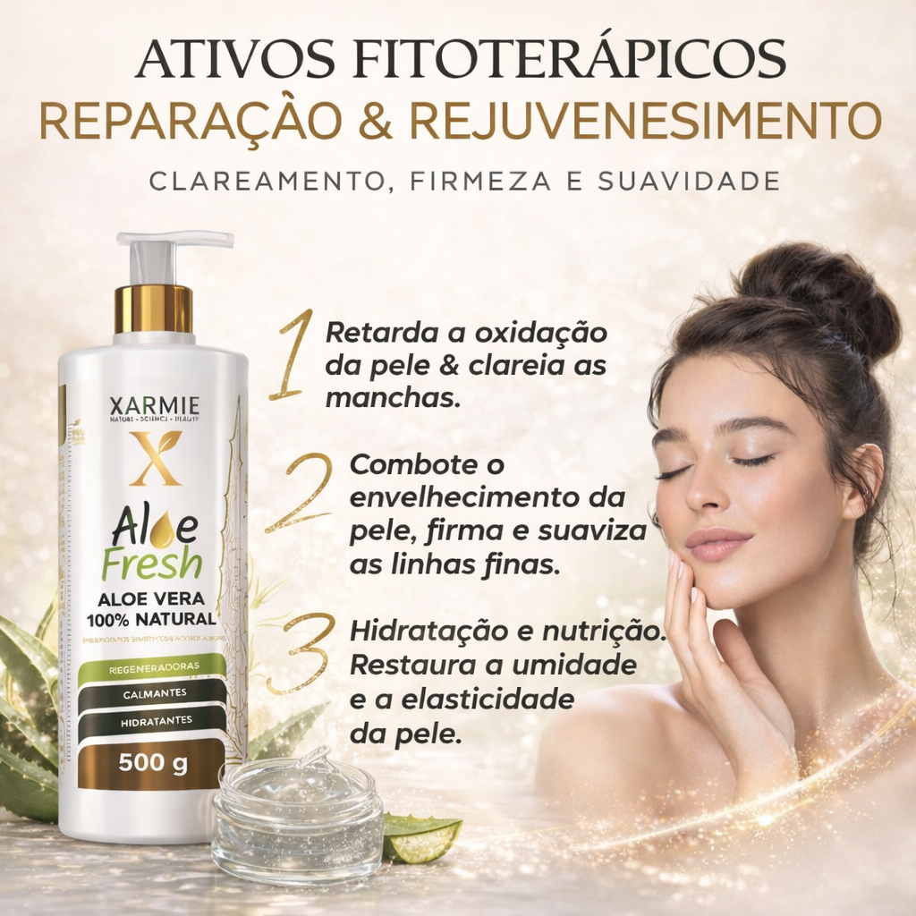 XARMIE Gel Anti-Idade Aloe Fresh Babosa Pura 500g para Rugas, Firmeza e Pele Jovem
