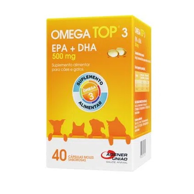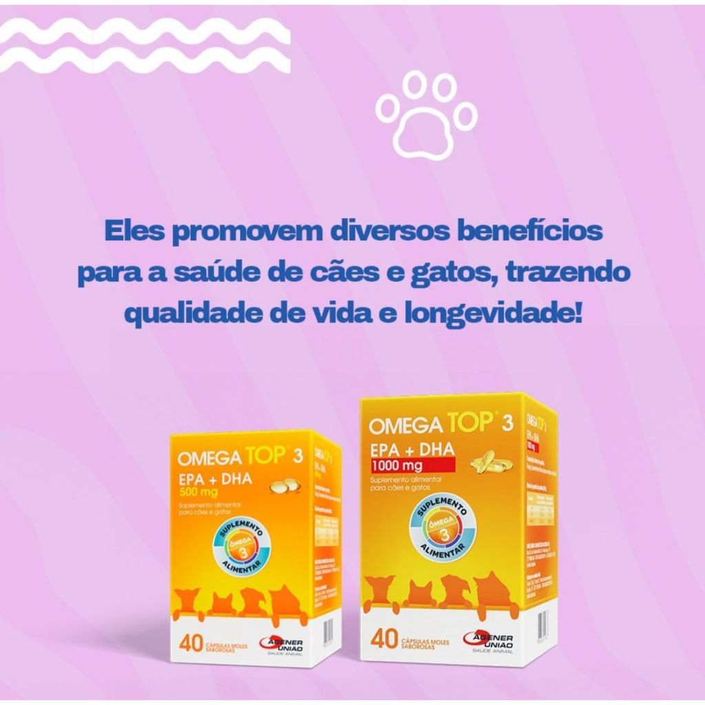 Ômega Top 3 Suplemento para Cães e Gatos 500/1000 mg - 40 Cápsulas
