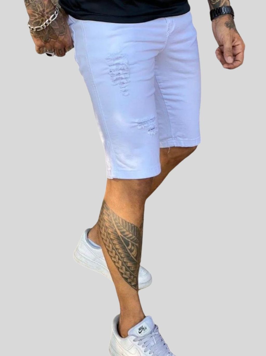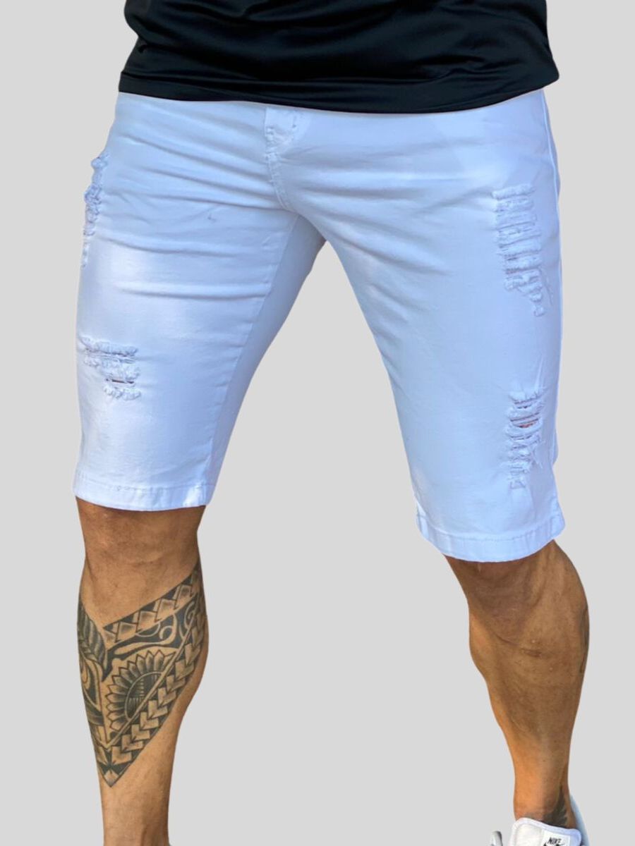 Bermuda Masculina Branca Desfiada Alta Qualidade