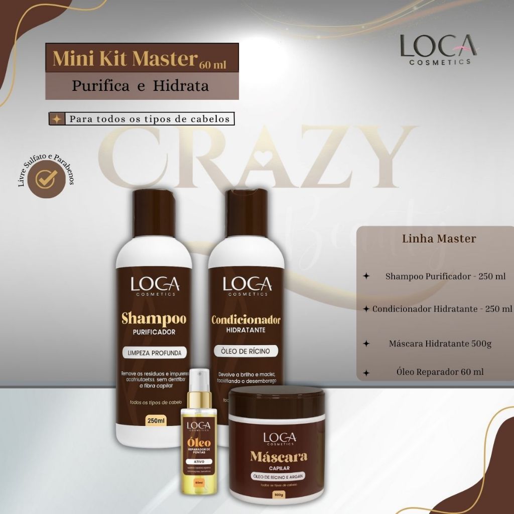 Kit Master - Máscara 500g + Shampoo + Condicionador 1LT Ou 250ml + Oleo 60ml - Loca Cosmestics