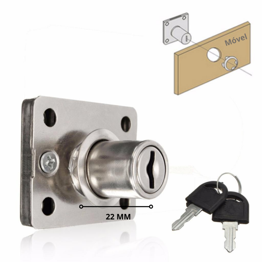 Fechadura Econômica para Gaveta Portas Móveis Armários 22mm com chave KIT
