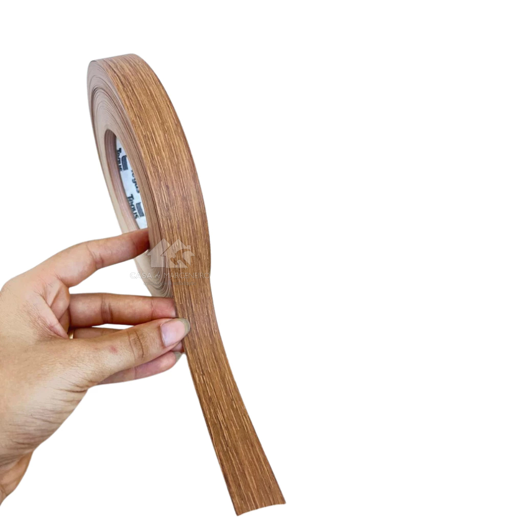 Fita de Borda Louro Freijó PVC 35mm acabamento para móveis MDF + Cola de Contato 75g
