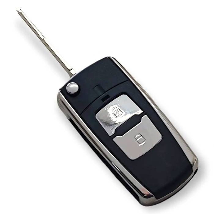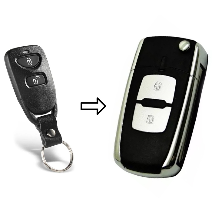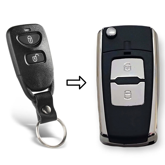 Carcaça Chave Canivete Adaptação Hyundai Tucson 2 Botões Cromada Com Lâmina Pantográfica
