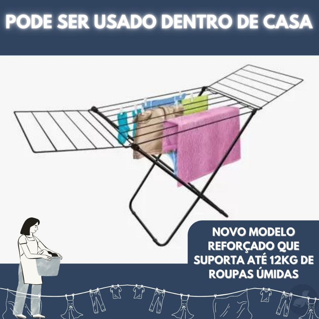 Varal De Chão INOX Reforçado Com Abas Retrátil SECALUX