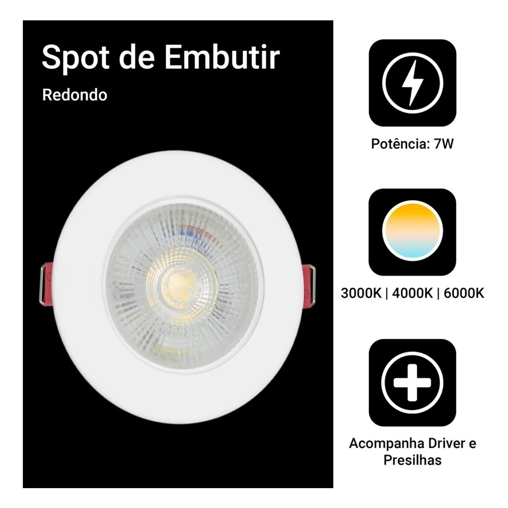 Kit 12 Spot Led Smd 7w Dicróica Direcionável Redondo BQ/BF