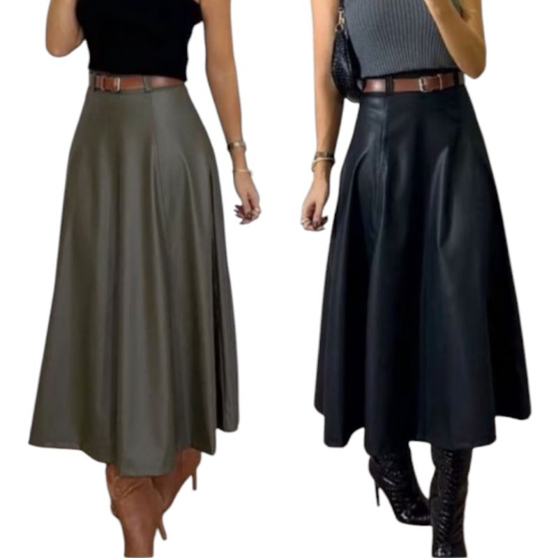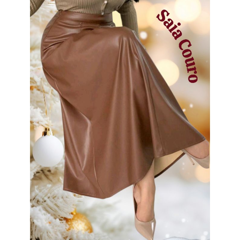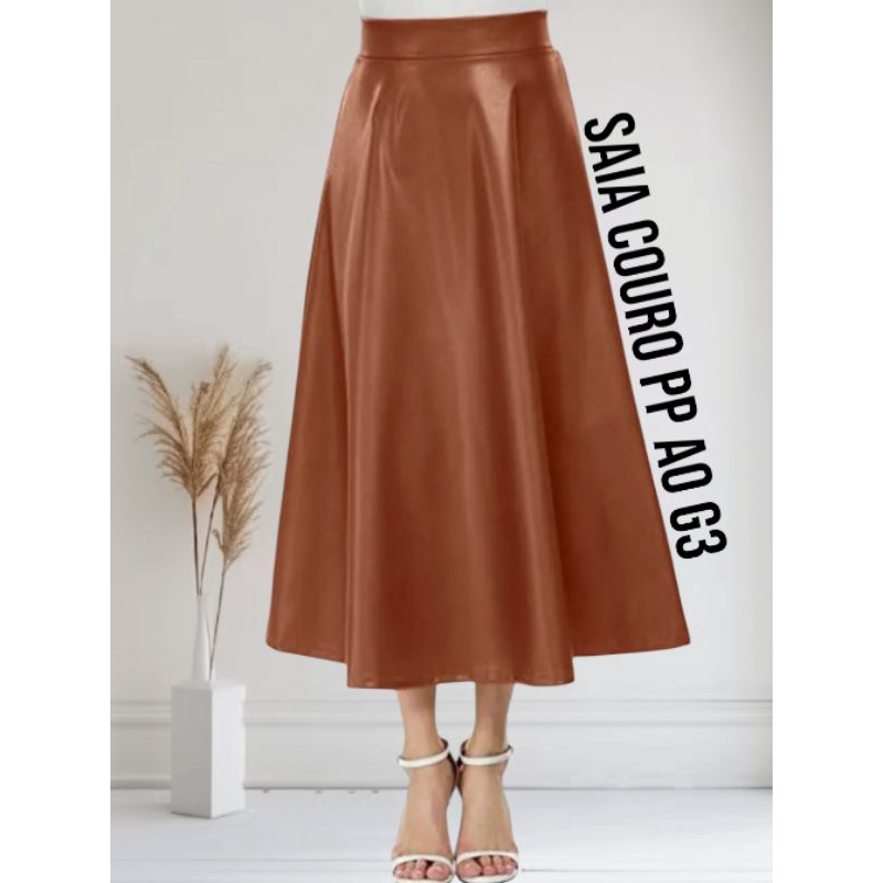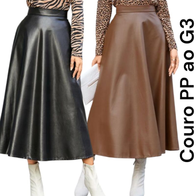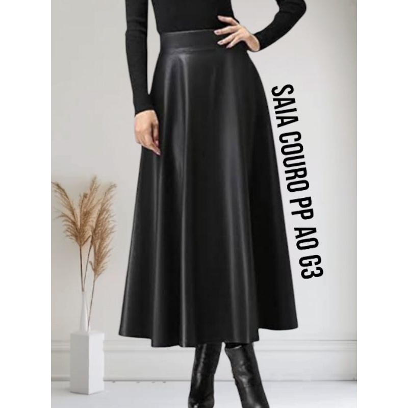 Saia longa cavaleira couro sintético e Malha Scuba GODÊ LANÇAMENTO elegante DO PP AO G3