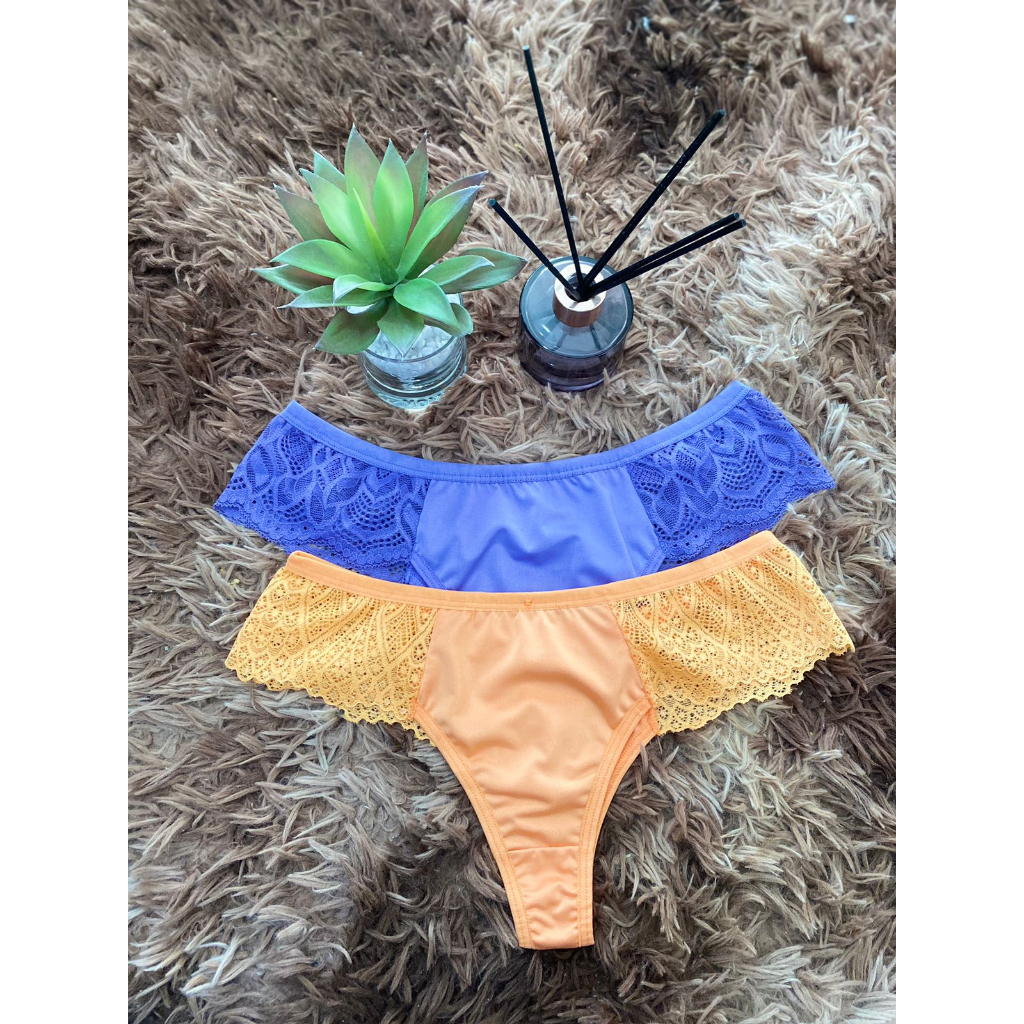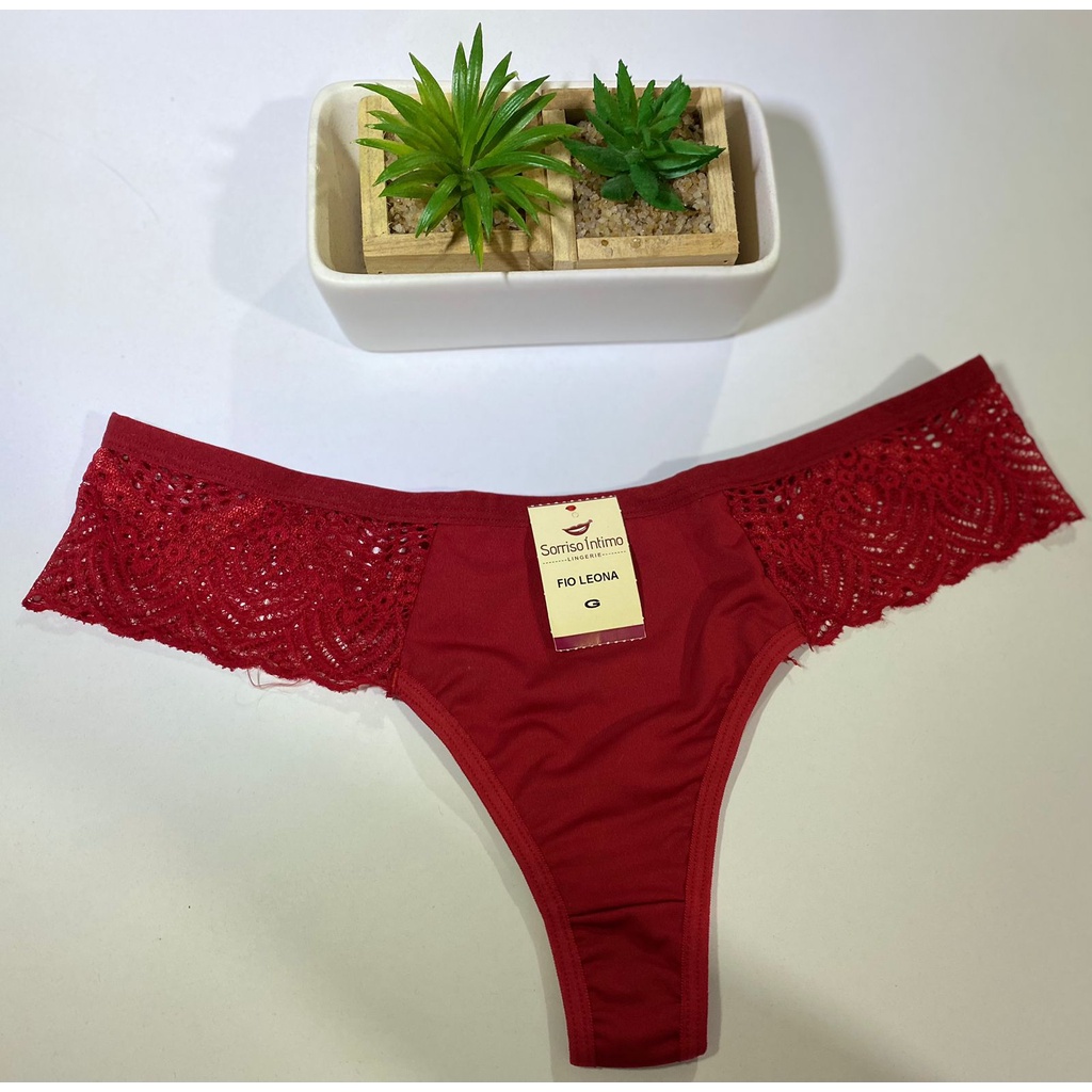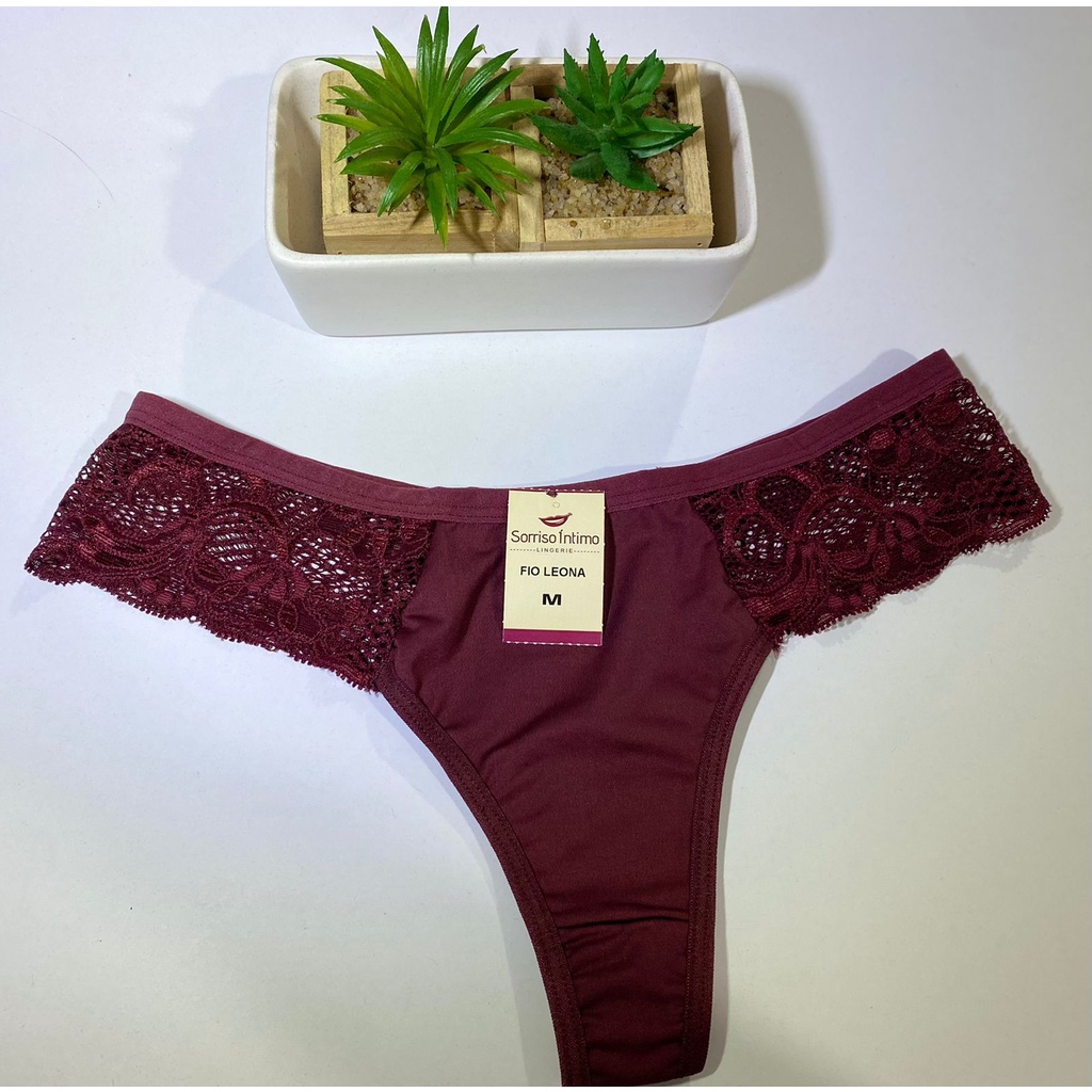 Kit 10 Calcinhas Leona Fio Dental E Renda Na Lateral Lingerie
