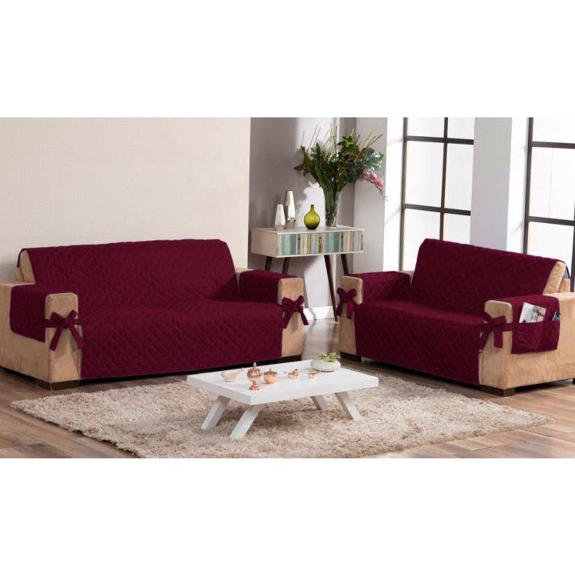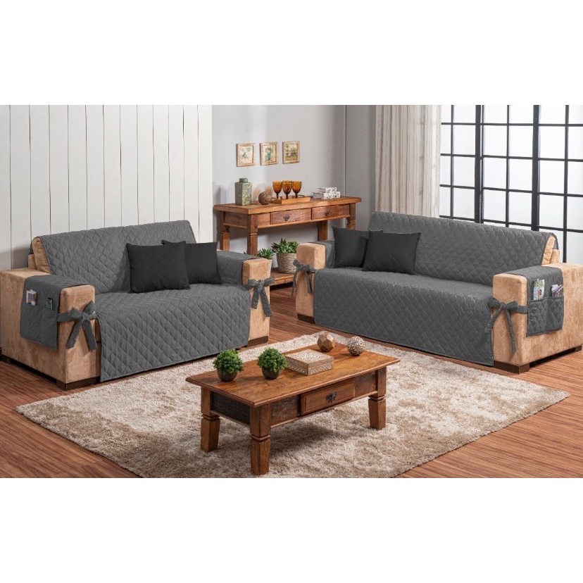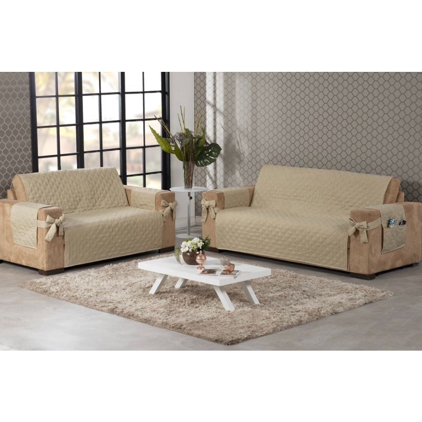 Jogo Capa Protetor para Sofa 2 e 3 lugares Matelado Com Laço e Bolso Cores
