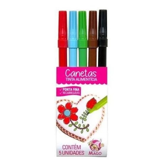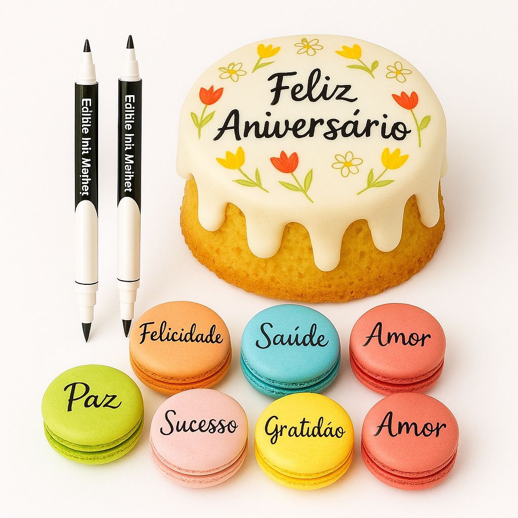 Kit Canetas Tinta Alimentícia Comestível Preta Colorida Confeitaria Decorar Bolo Biscoitos Cozinha