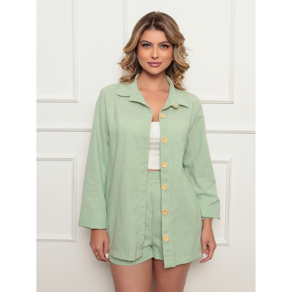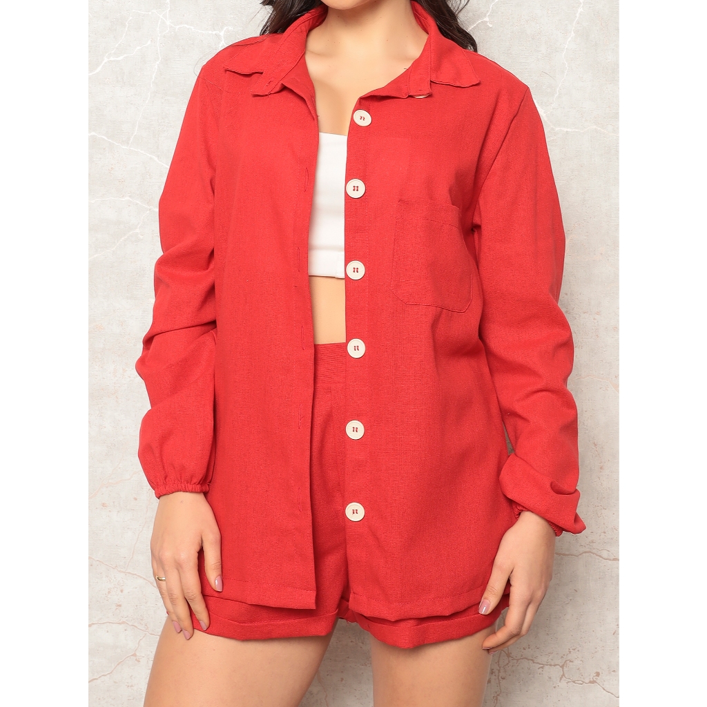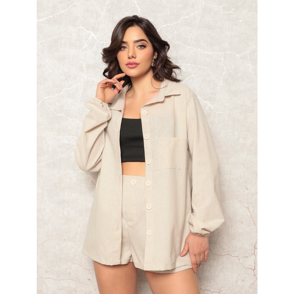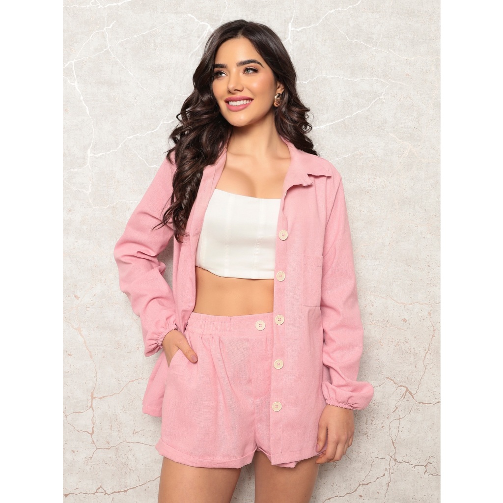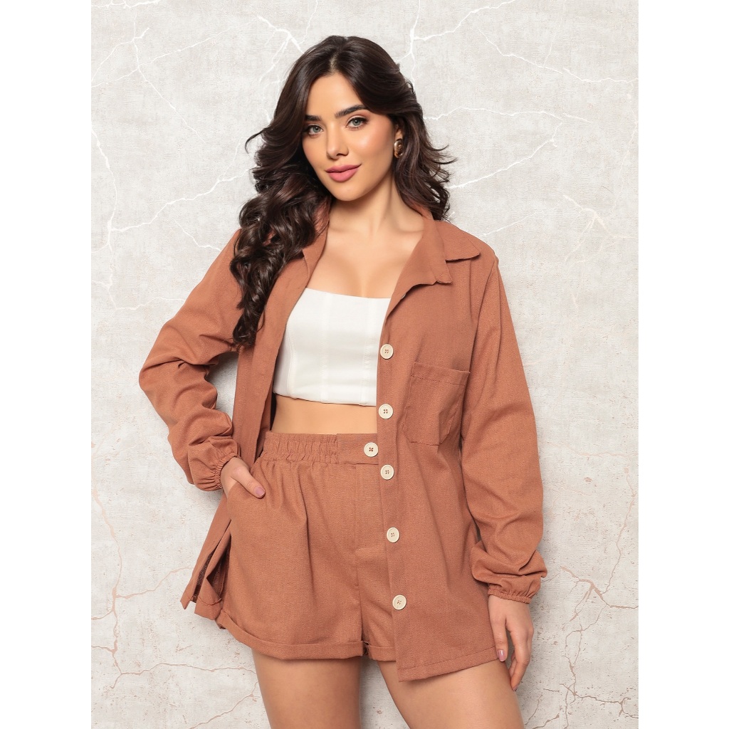 Conjunto Linho Feminino Camisa E Short Linha Premium