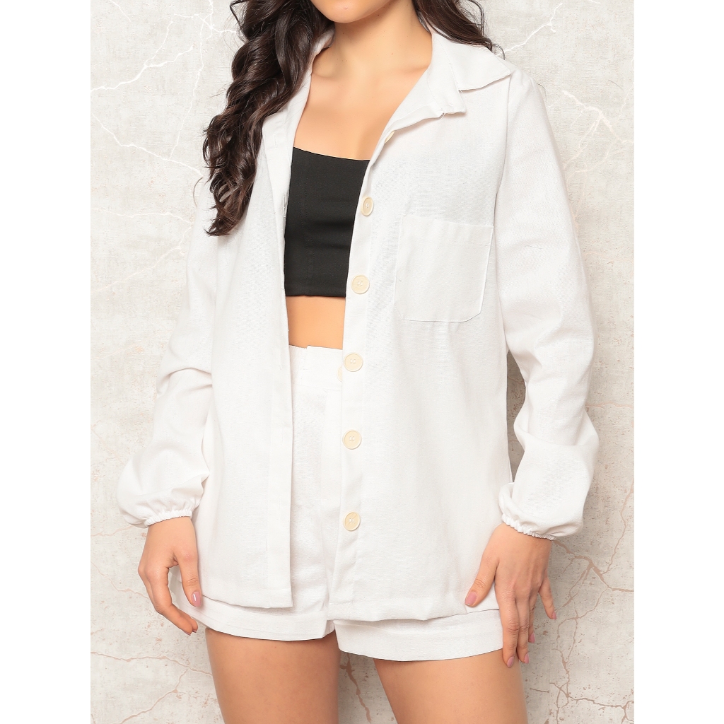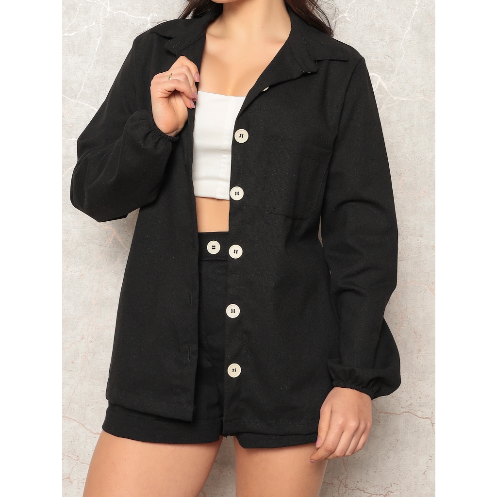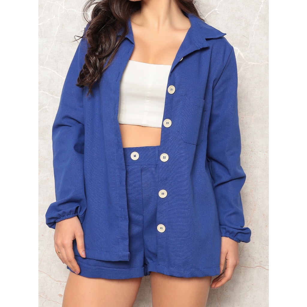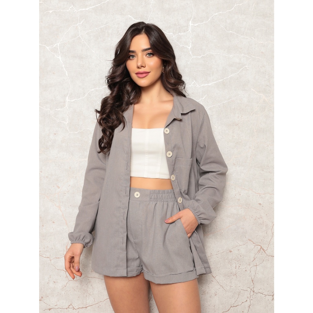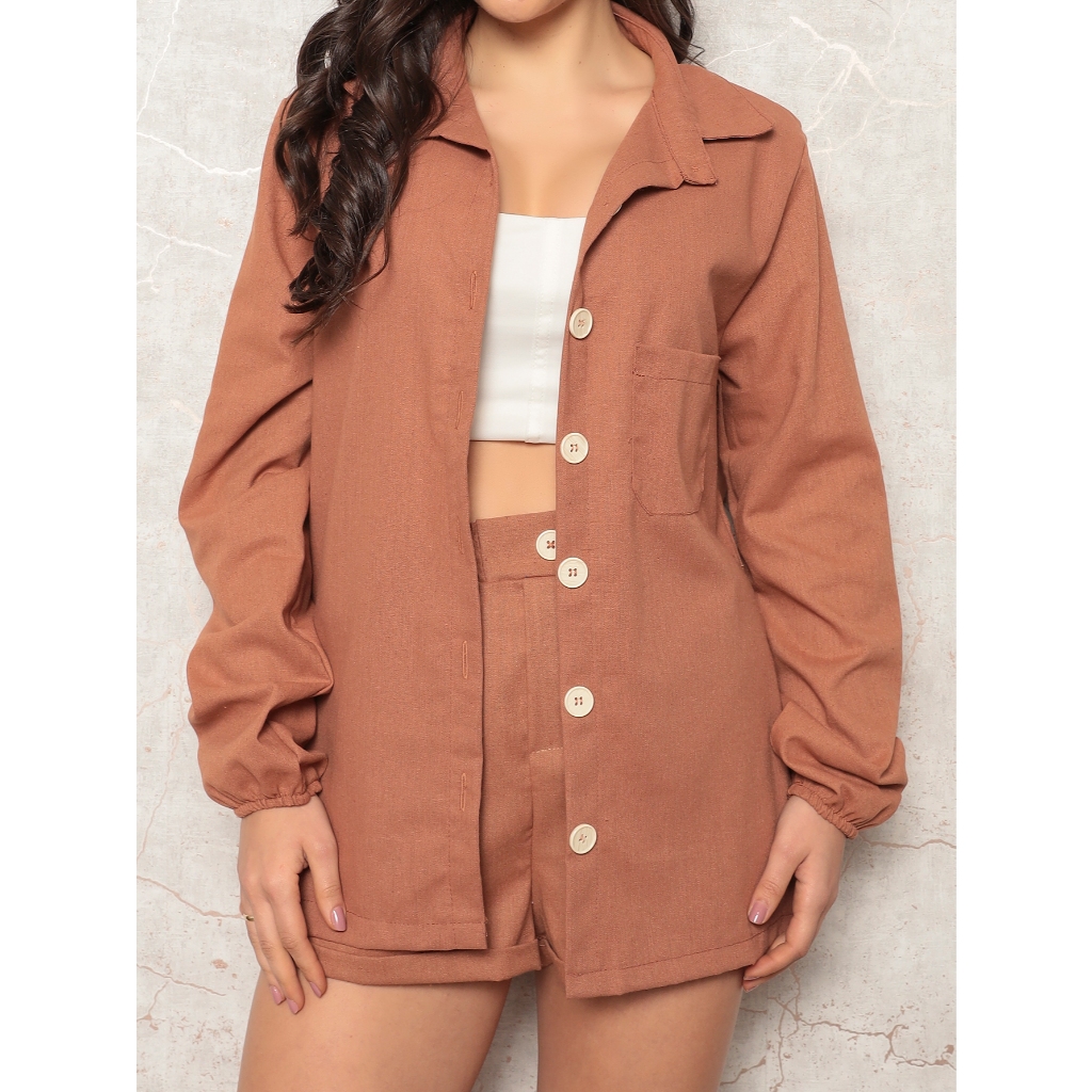 Conjunto Linho Feminino Camisa E Short Linha Premium