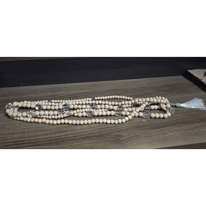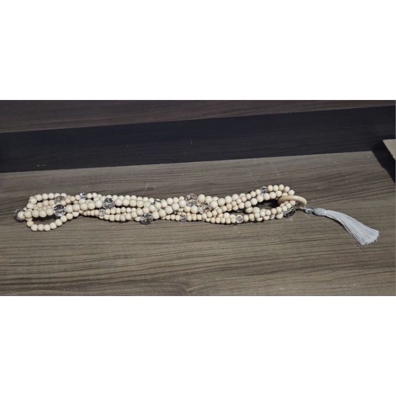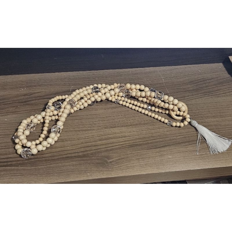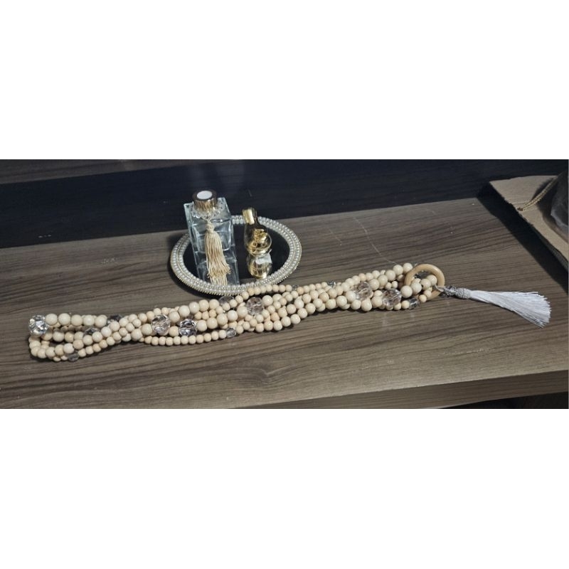 Colar decorativo triplo de mesa/rack perolas madeira e acrilico