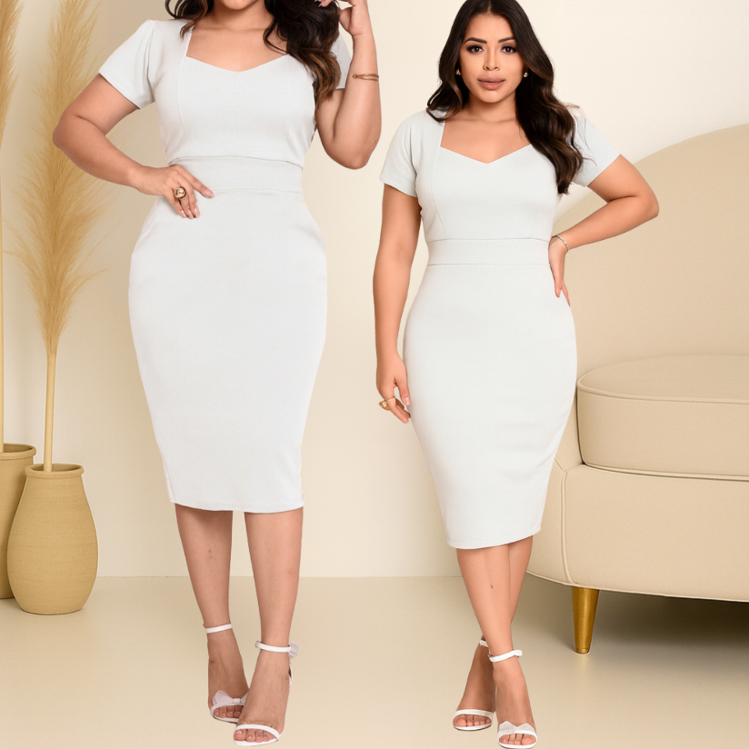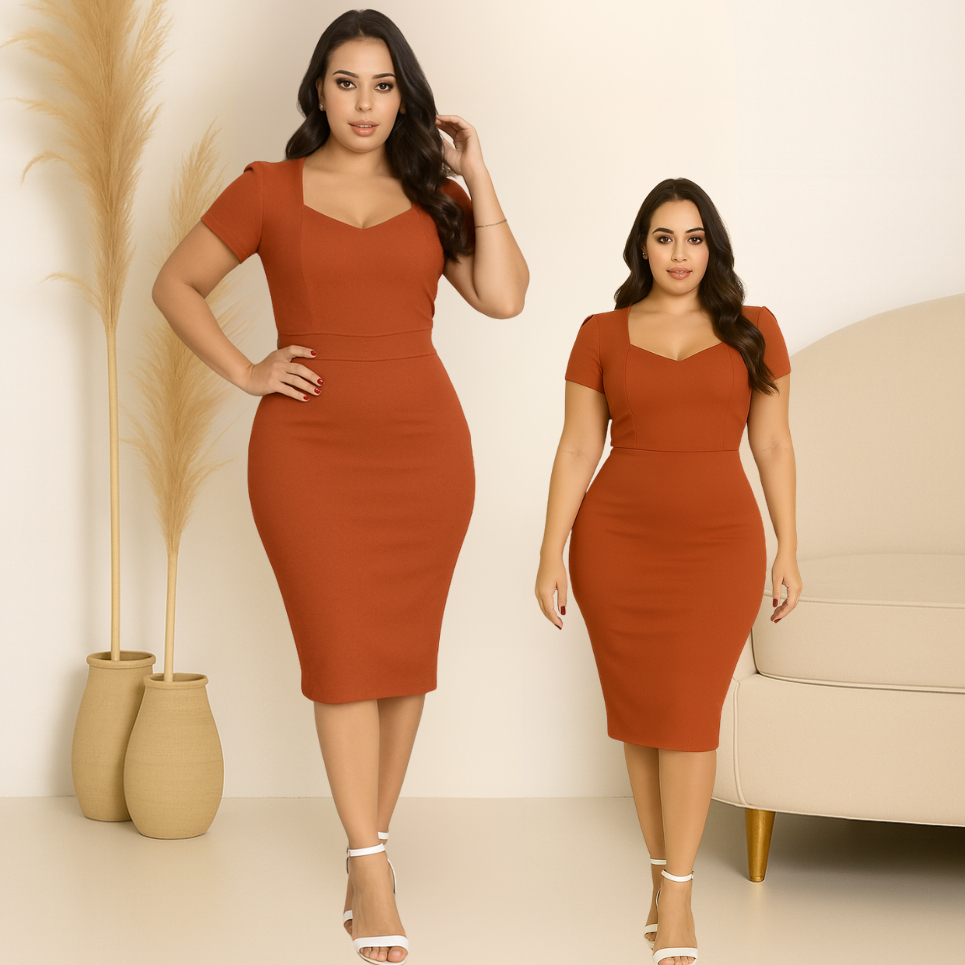 Vestido Mídi Feminino Casual Secretaria Manga Curta Bolso Crepe Malha Moda Evangélica Social Plusize