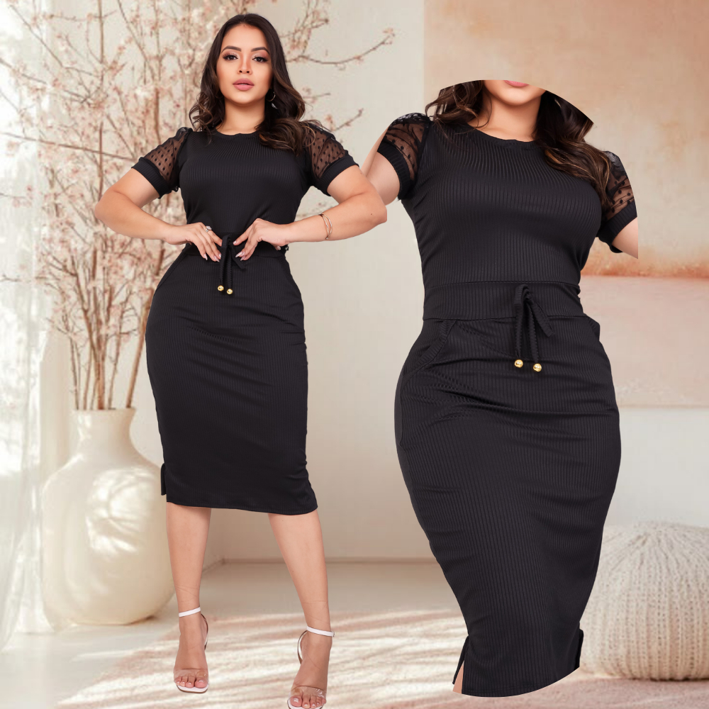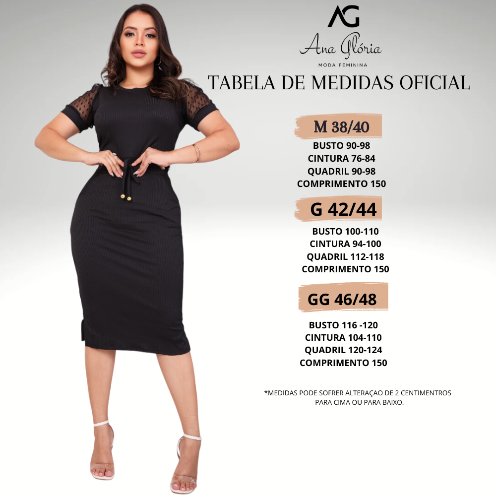 Vestido Mídi Feminino Malha Canelada Manga Curta Tule Moda Evangélica Social Clássico Plussize