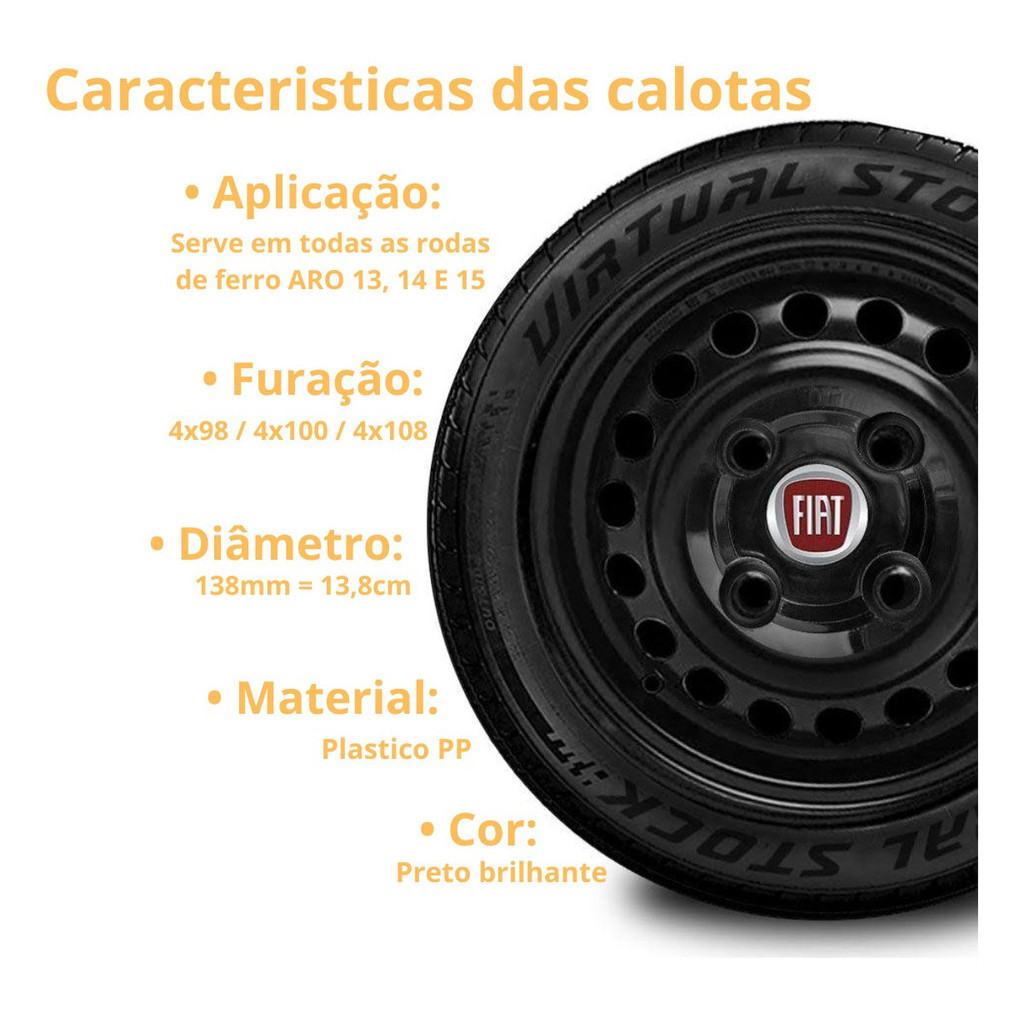 Jogo Calotinhas Centrais De Rodas 4 Furos Fiat Uno Premio Elba Fiorino Palio Siena strada Aro 13 14 15