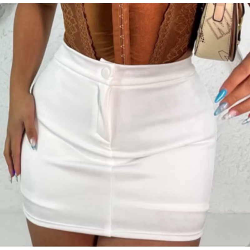 Short Saia Alfaiataria Com Cintura Alta Com Botão Tendência