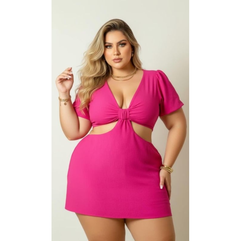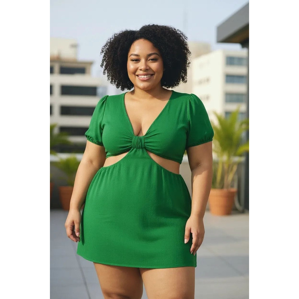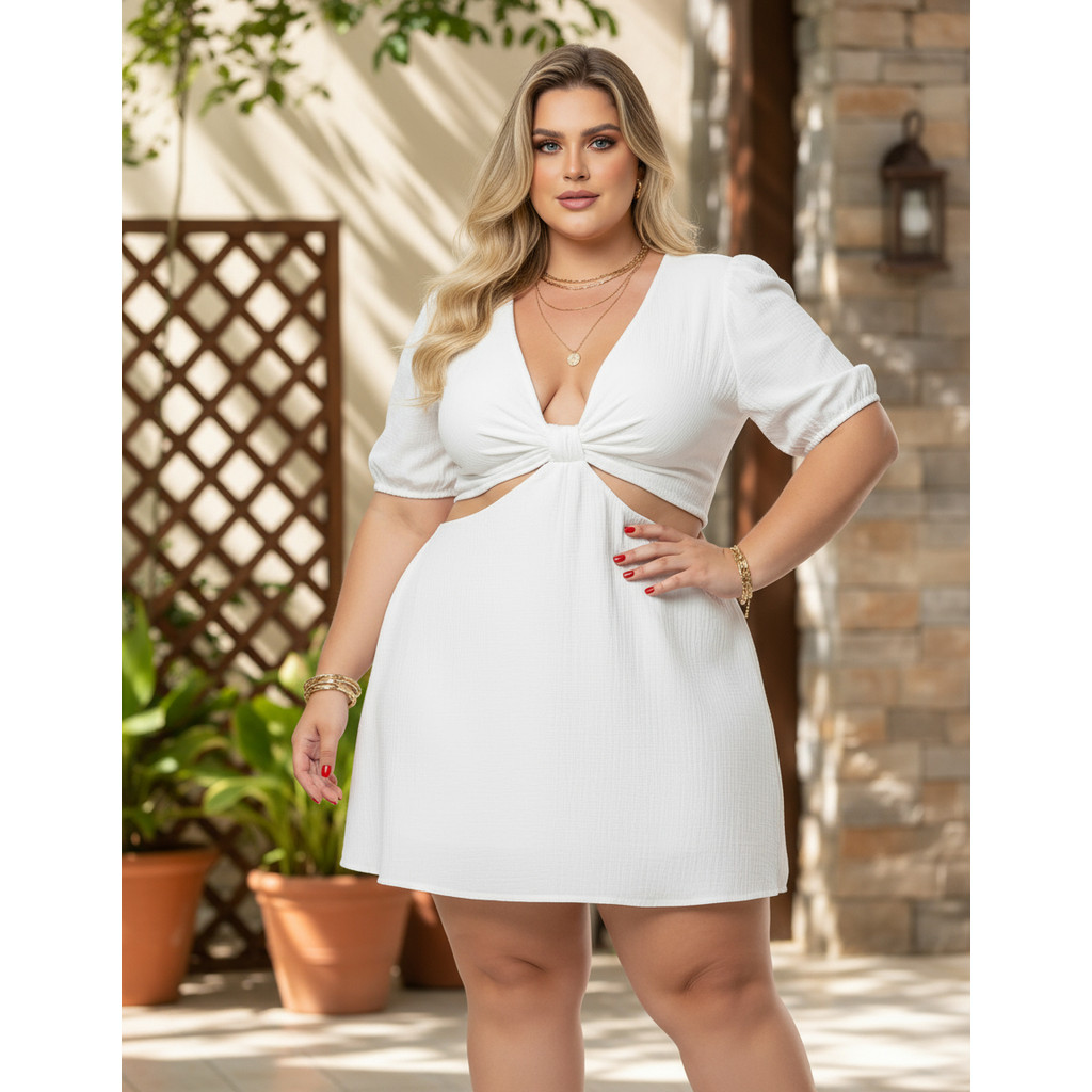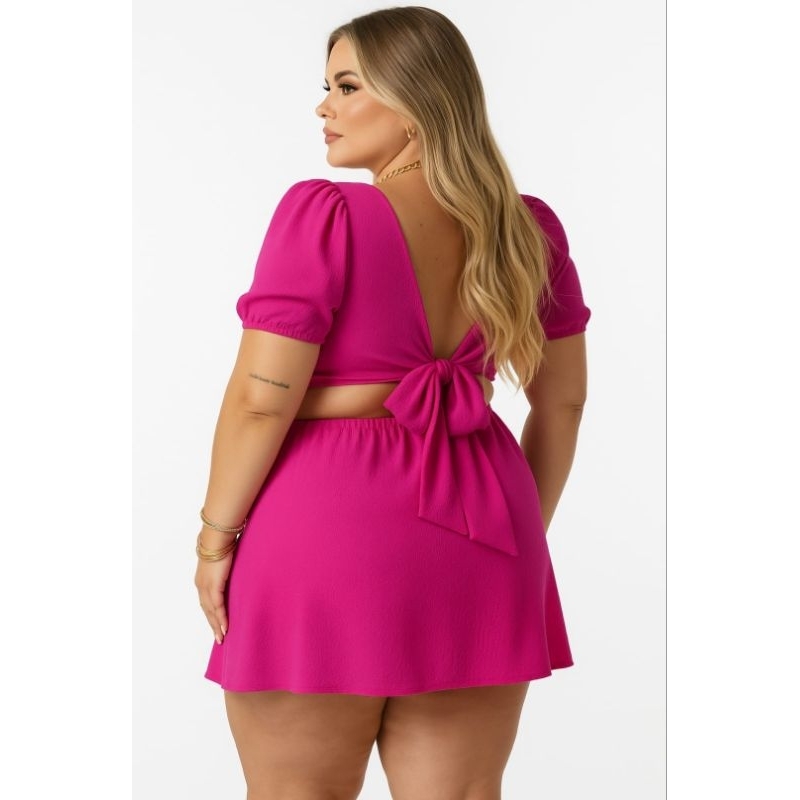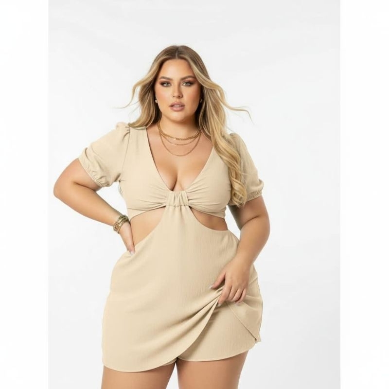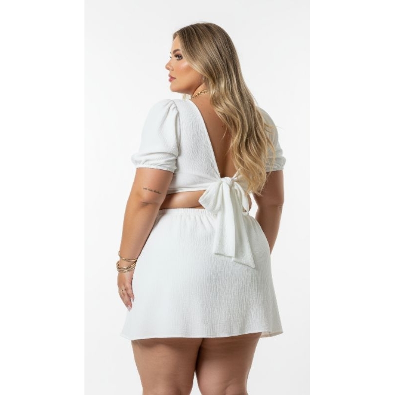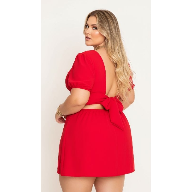 Macaquinho Feminino Plus Size Short Saia Manga Princesa Duna