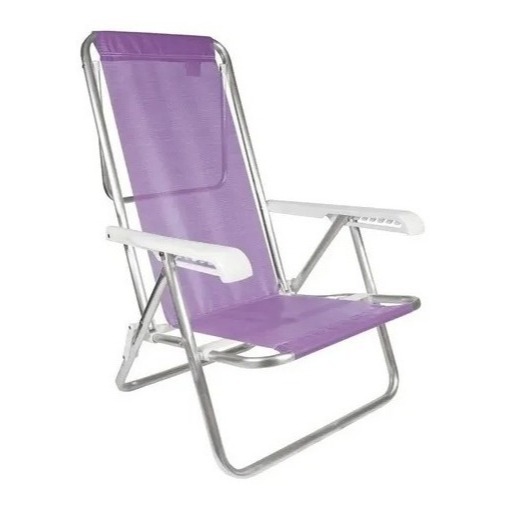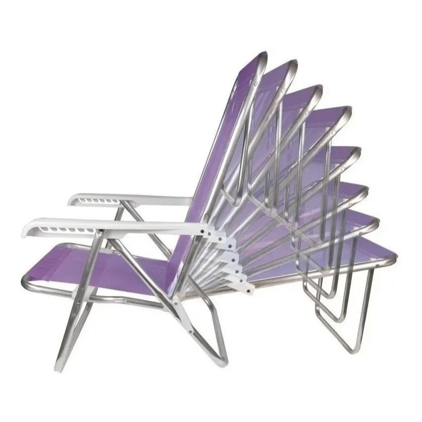 Cadeira De Praia Piscina Verão Mor Reclinável 8 Posições Alumínio Lilás/Azul/Verde