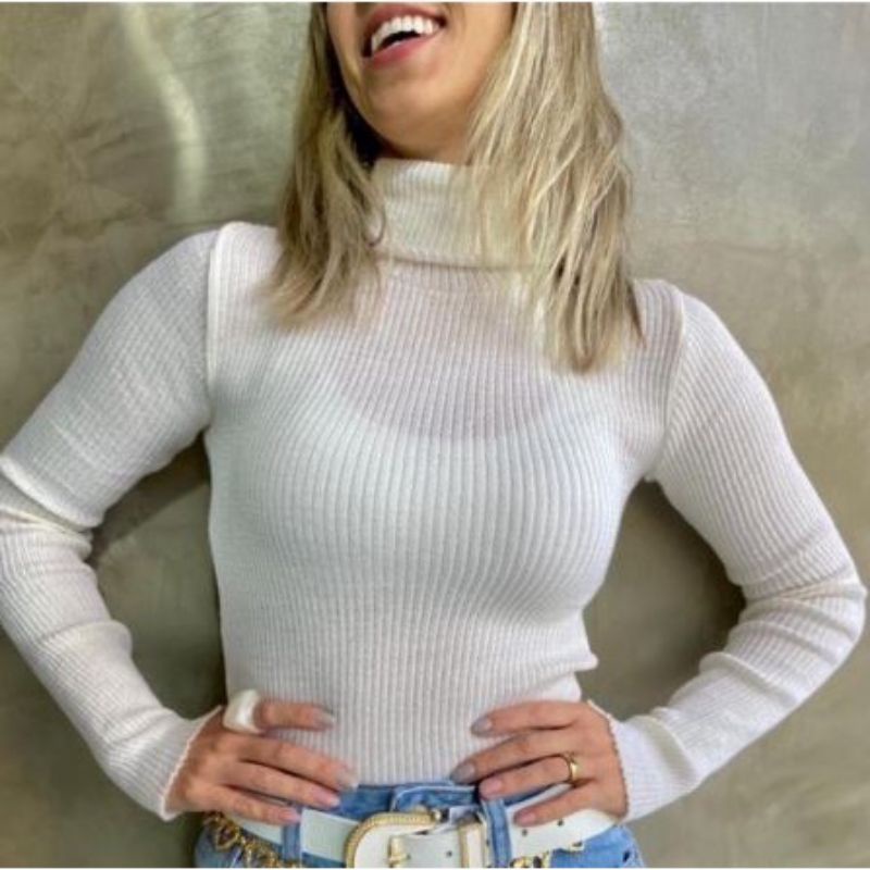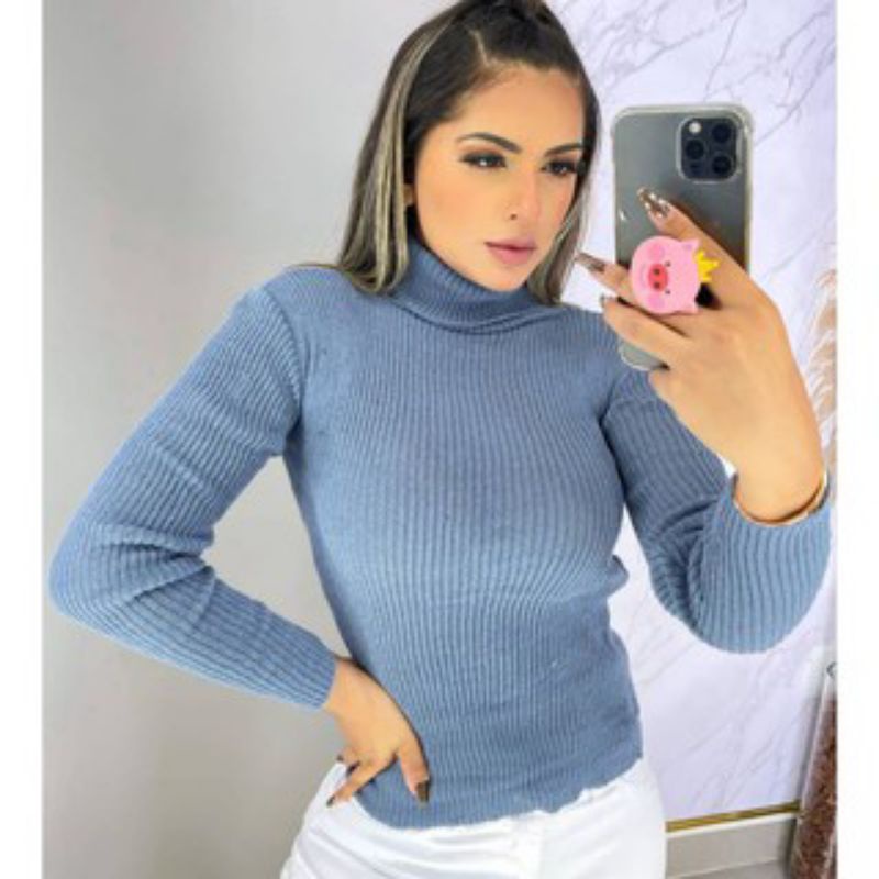 Blusa Blusinha Feminina Tricot Modal Gola Alta Manga Longa / Manga Comprida Tricô / Envio em 24hrs