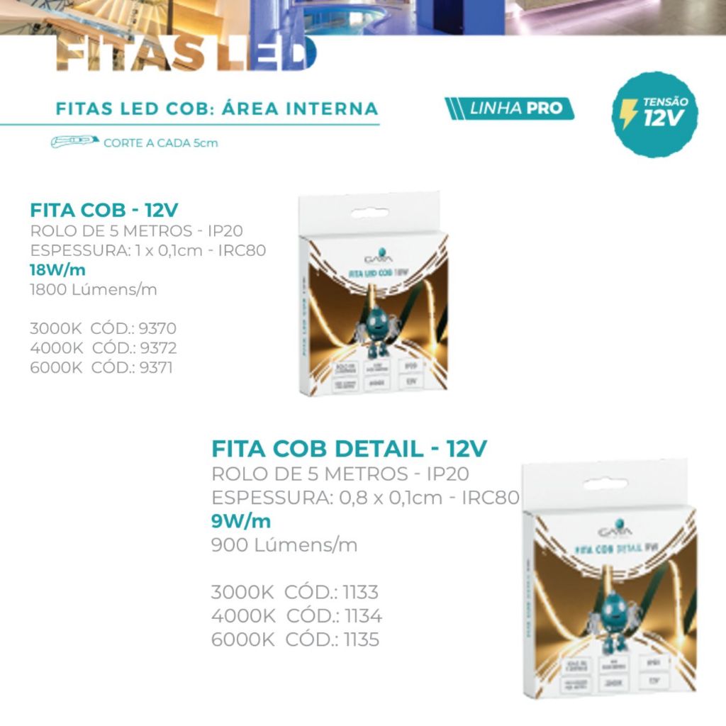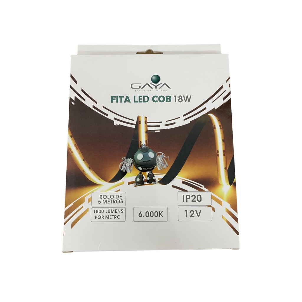 Fita Led Cob 18w 5m 12v Ip20 6500k Branco Frio Gaya