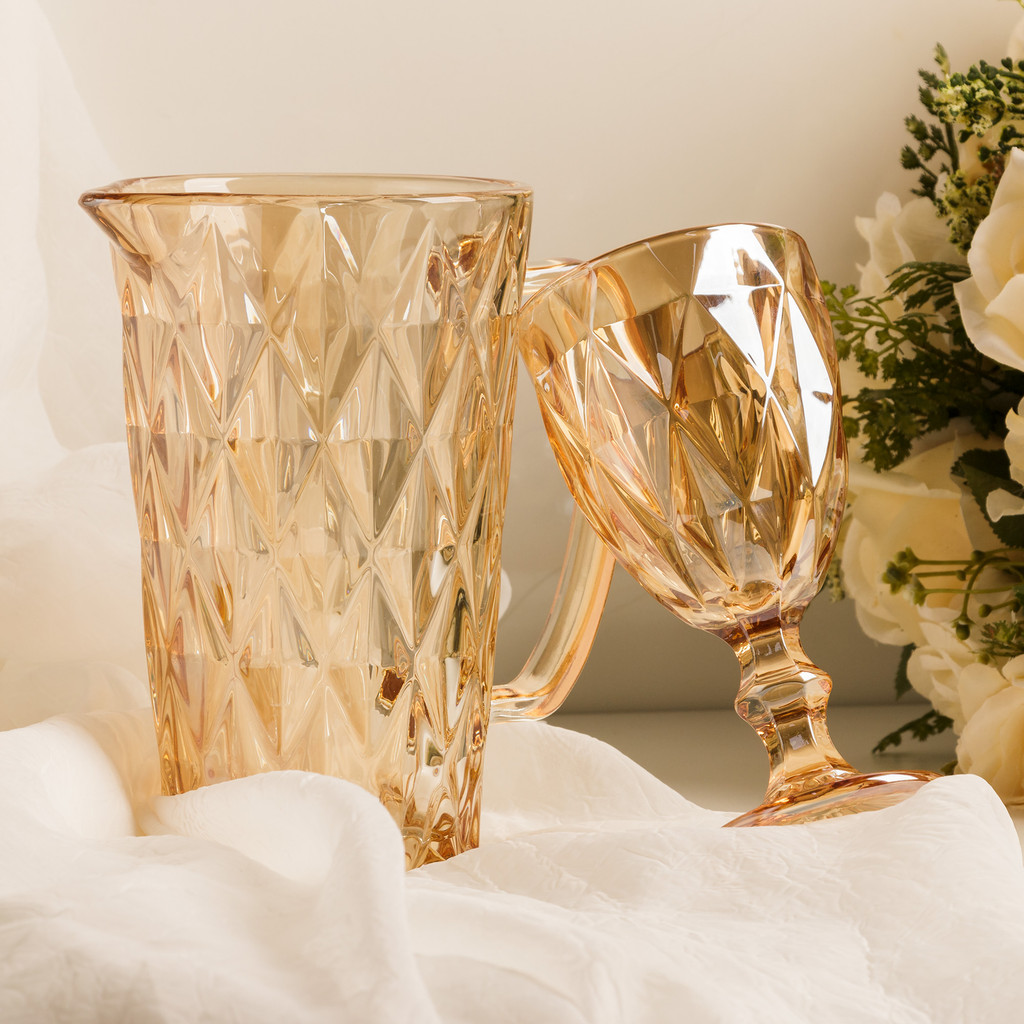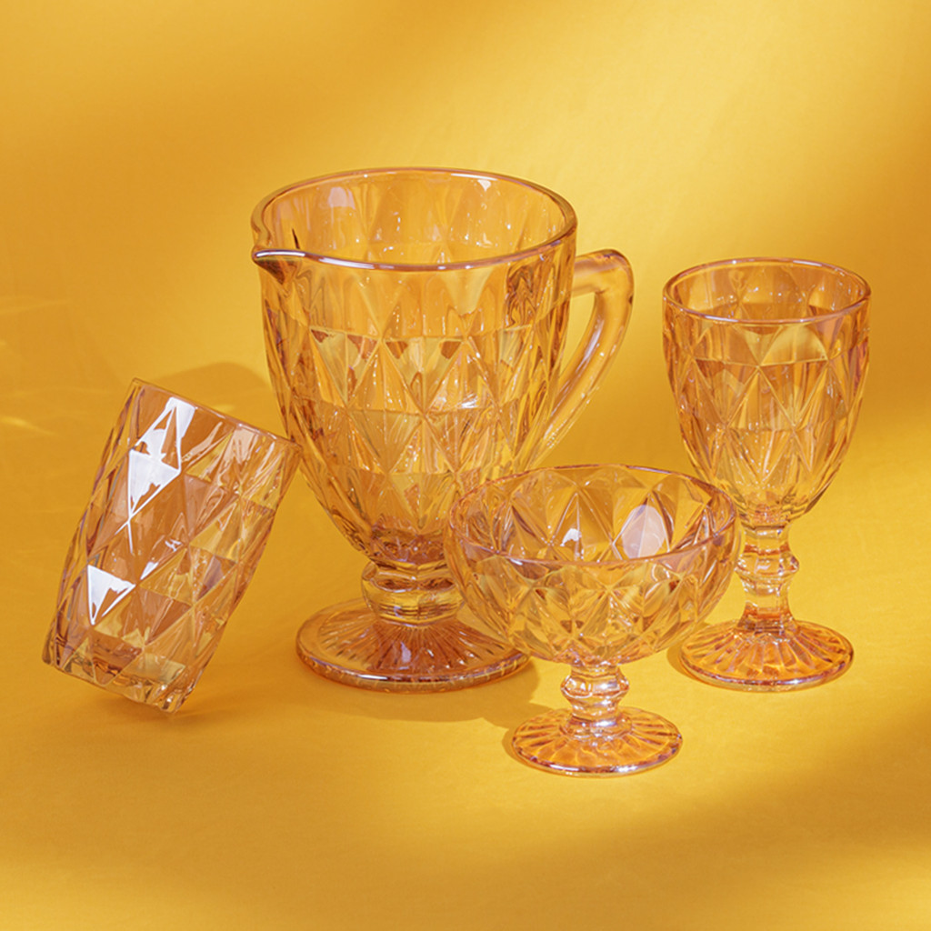 Conjunto de 6 Taças de Água Lyor Diamond de Vidro Âmbar Metalizado - 325ml
