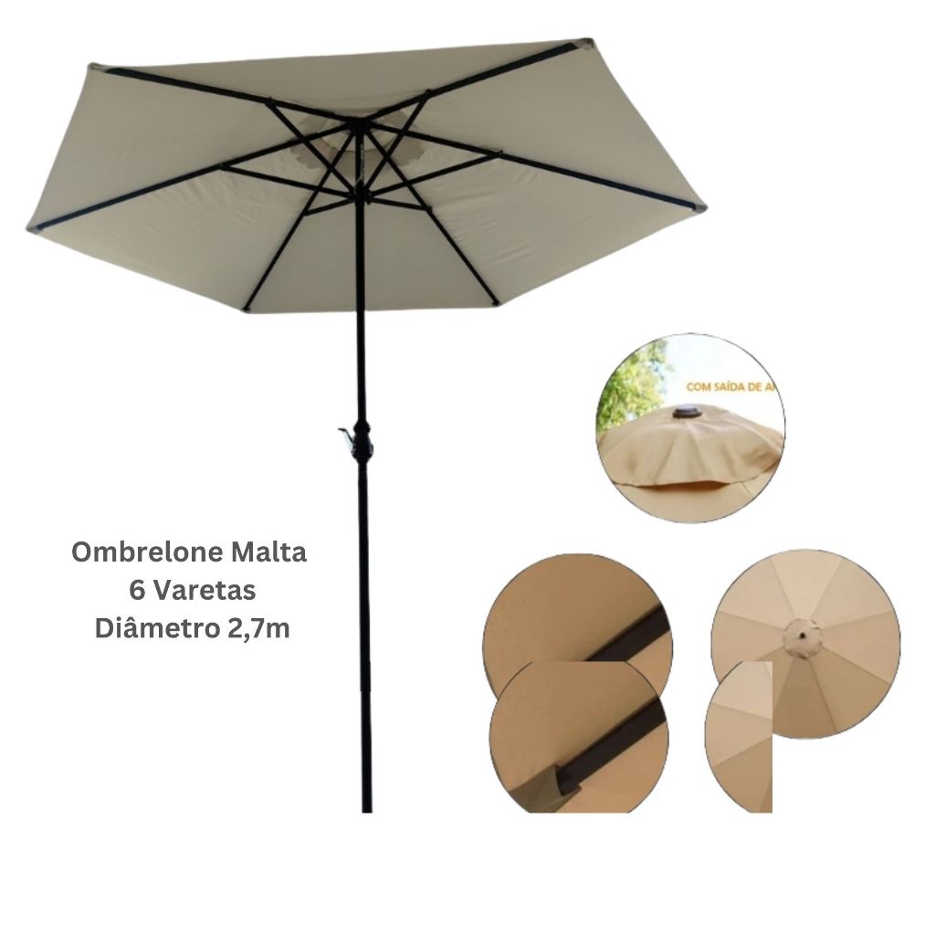 Ombrelone Malta 6 Varetas Altura 1,8m diâmetro 2,7m Chalesco