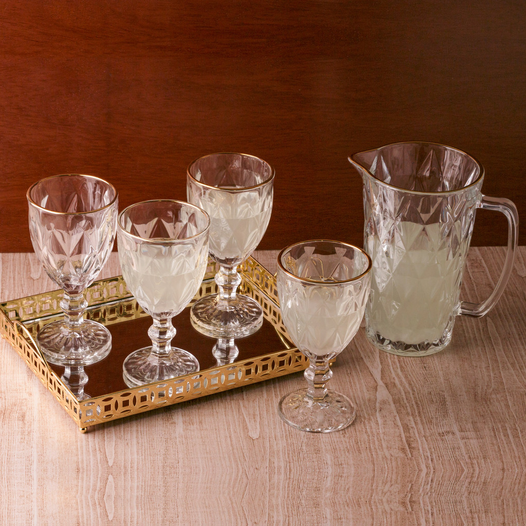 Jarra Diamond De Vidro Com Fio De Ouro Dourado 1,14L Lyor