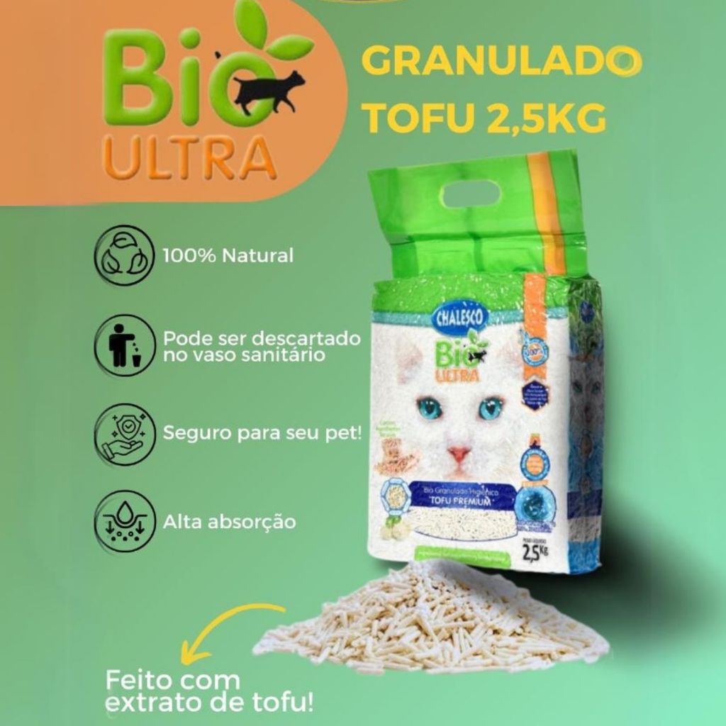 Kit 2 pacotes Granulado Higiênico Biodegradável Tofu Premium 2,5kg