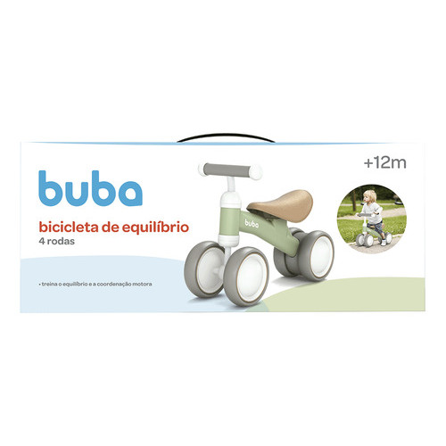 Bicicleta De Equilíbrio 4 Rodas Retro Sem Pedal - Verde ou Bege Buba