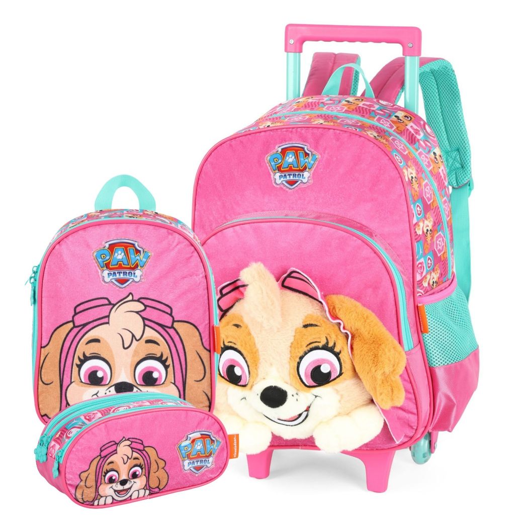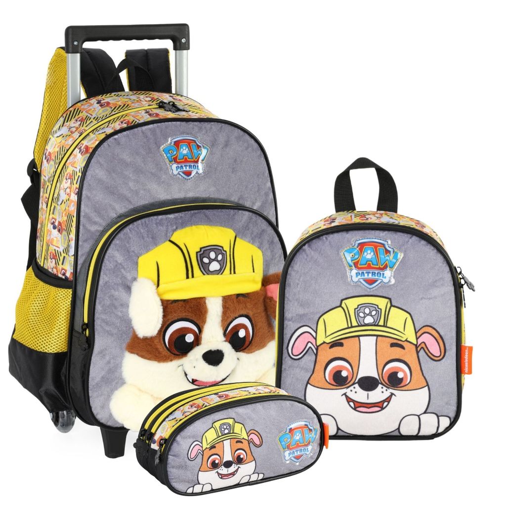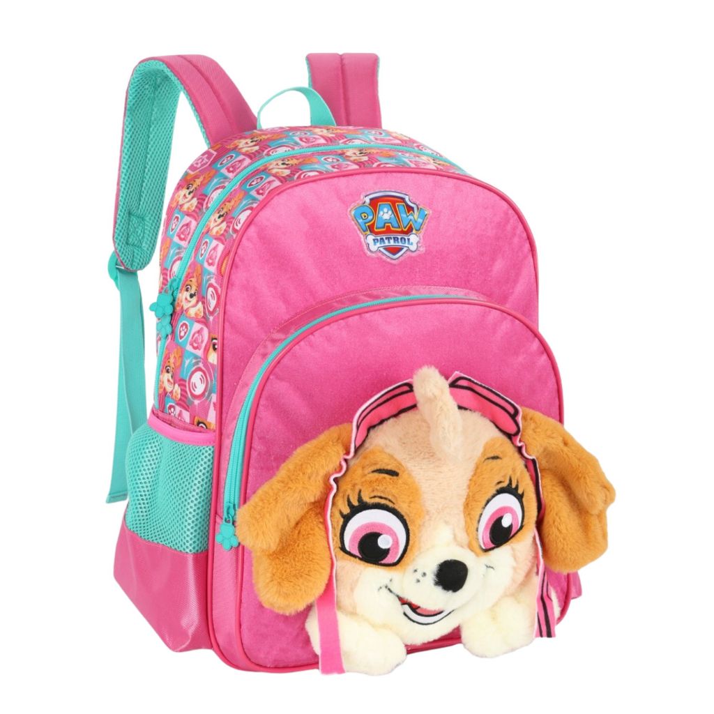 Mochila Escolar 41x30cm16" Patrulha Canina Aplique Pelúcia 3D Luxcel