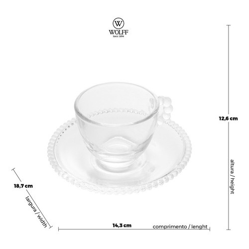 Jogo de 4 Xícaras de Café com Pires Crystal Pearl 80ml - Wolff