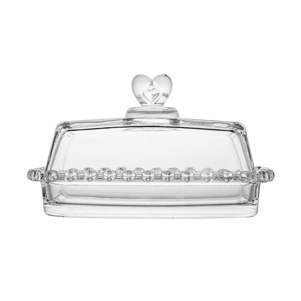 Kit de 2 peças: Manteigueira 17x10,5x10cm e Queijeira 19,5x13cm Cristal Coração com Tampa Lyor