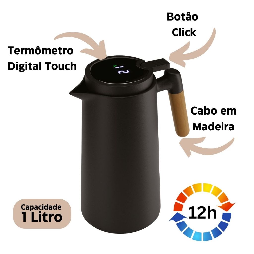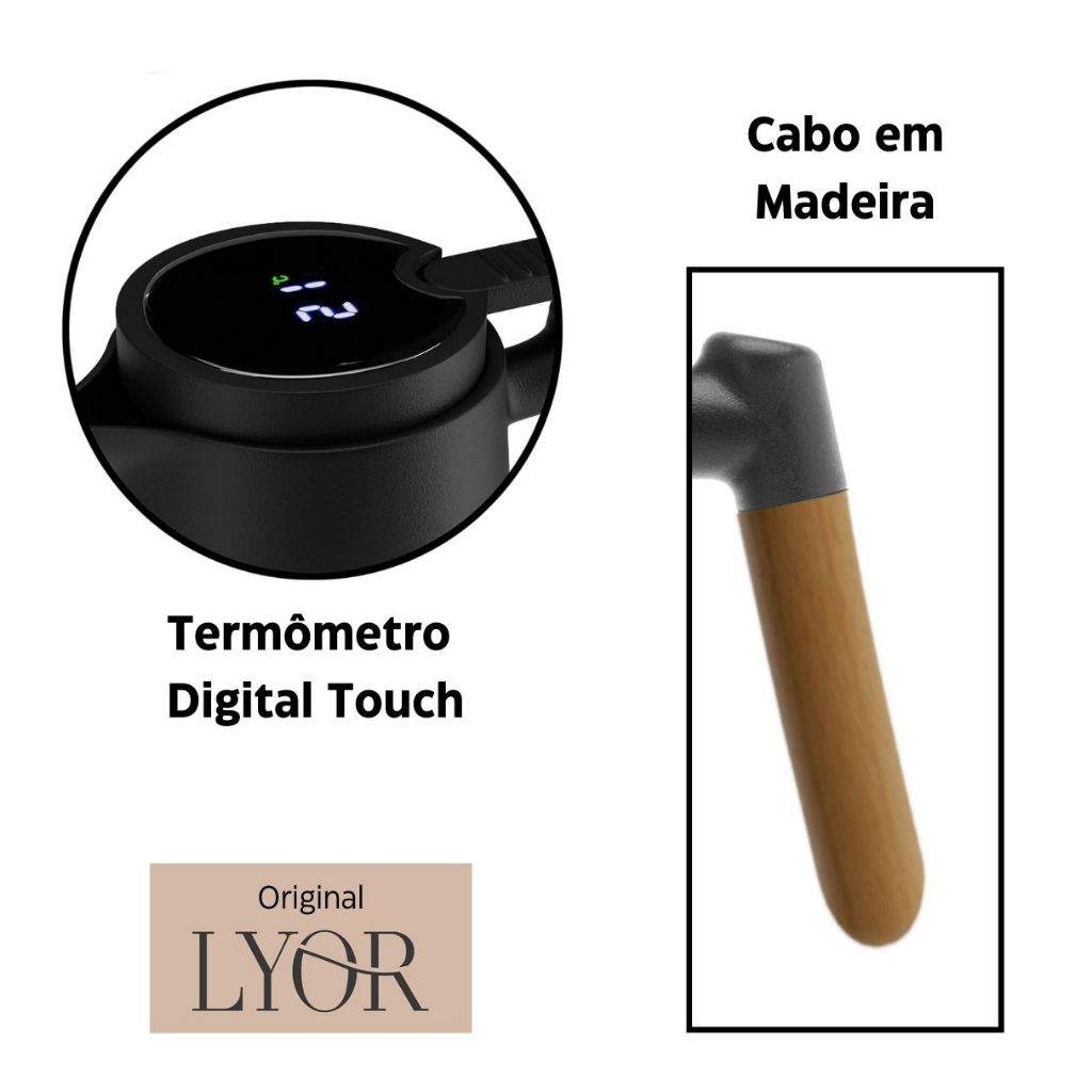 Garrafa Térmica Digital Lyor Nórdica 1L com Termômetro LED Touch Quente e fria por até por 12h