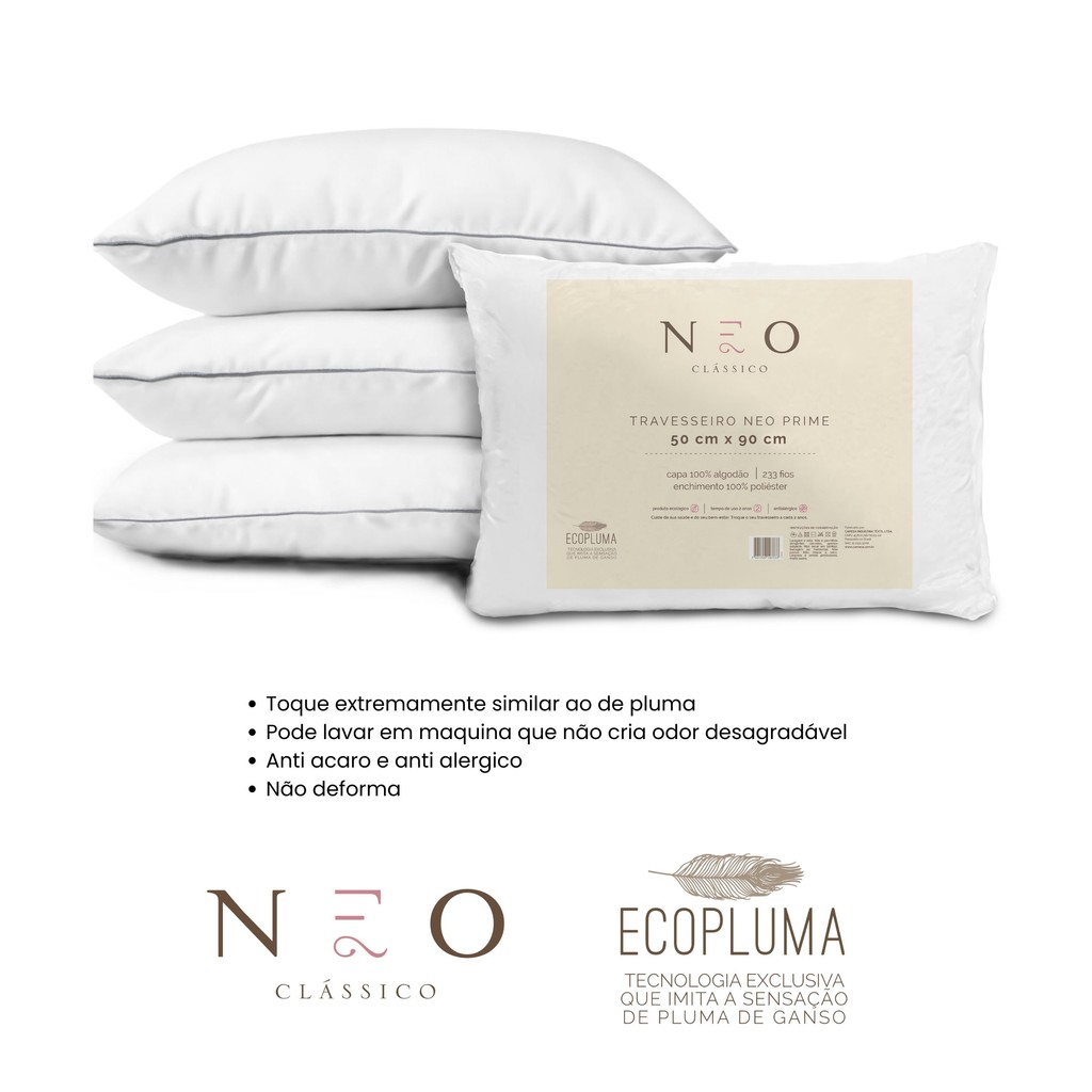 Travesseiro Neo Prime Ecopluma 233 Fios 50x90cm – Branco - Camesa