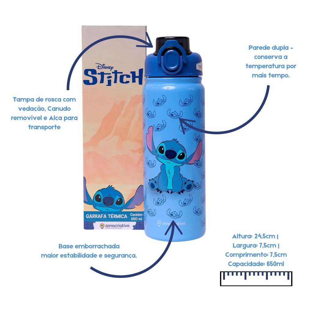 Garrafa Termica Galaxy Stitch Disney 650ml Zona Criativa