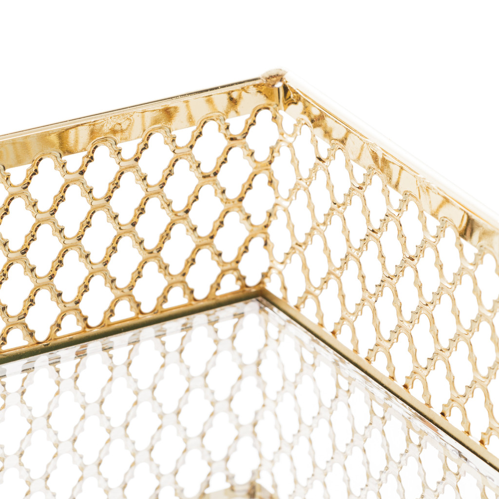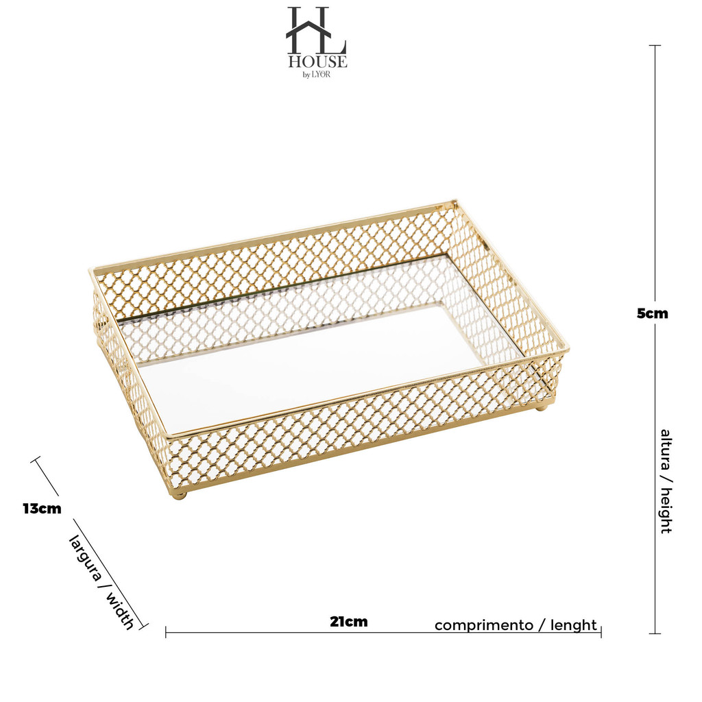 Bandeja de Metal com Espelho Barcelona Dourada 21cm x 13cm x 5cm - Lyor