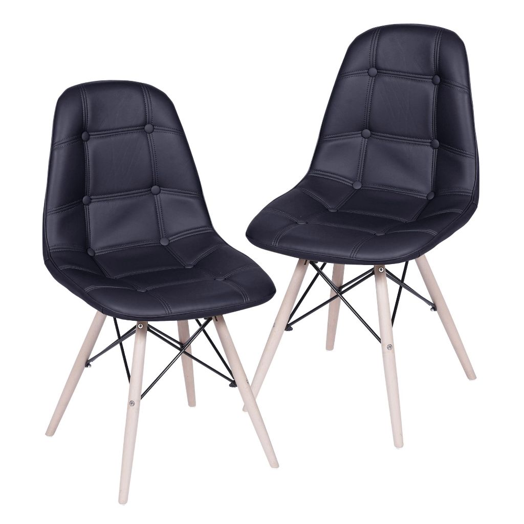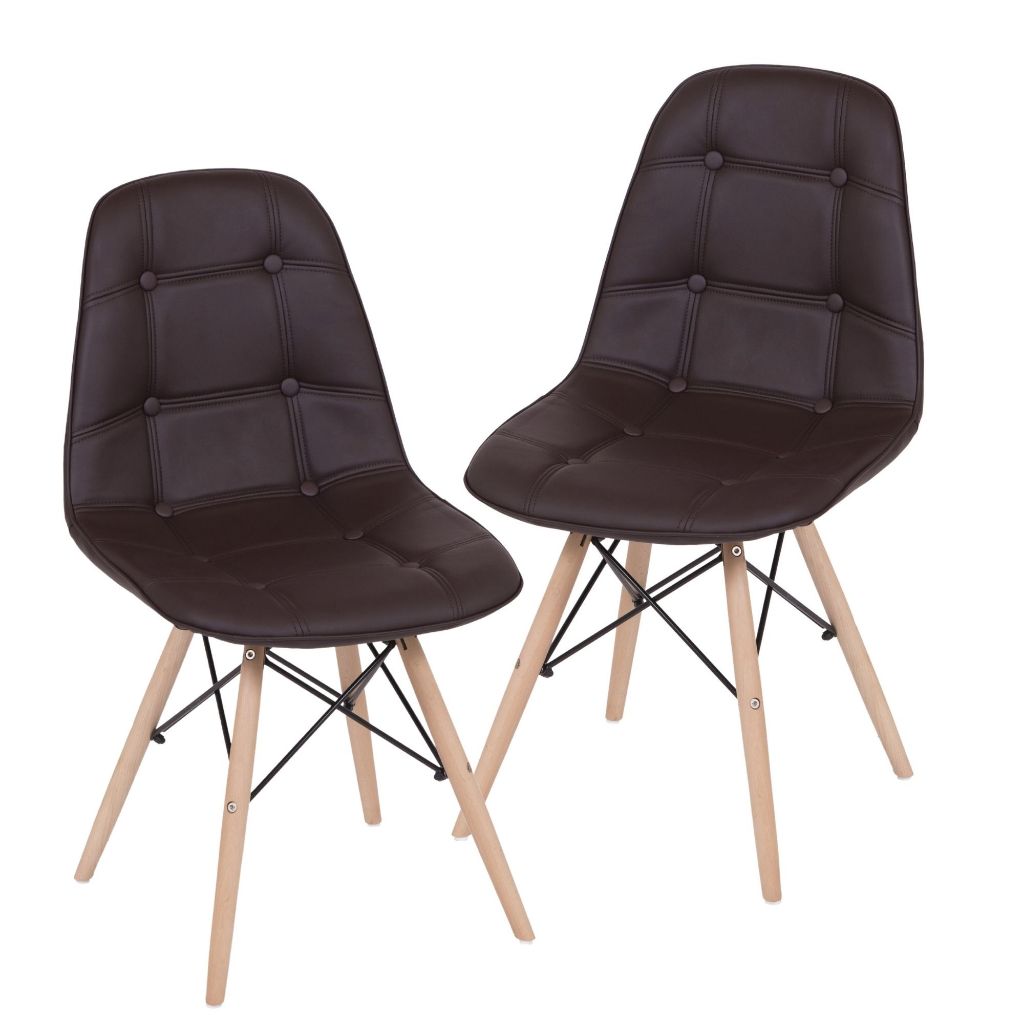 Conjunto Cadeira DKR Eiffel base Madeira Botone Almofadada - Branca, Preta, Bege e Cinza e Café