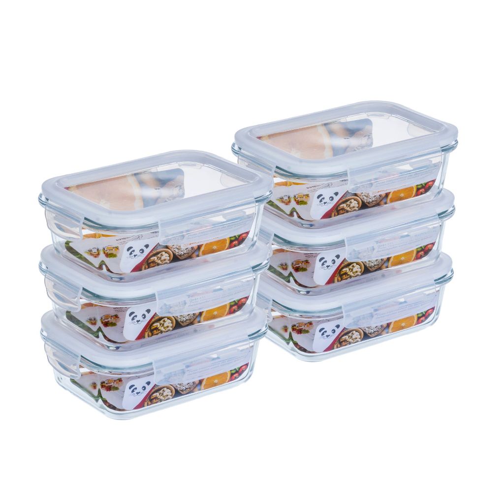 Kit Potes Herméticos Alimentos Marmita Fitness vidro Retangular 640ml / 370ml - GP Home