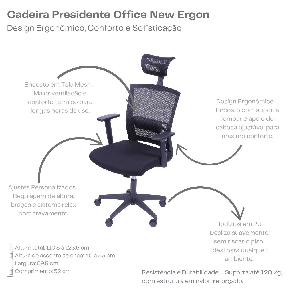 Cadeira Presidente Office New Ergon Design Ergonômico com Encosto Cabeça Or Design
