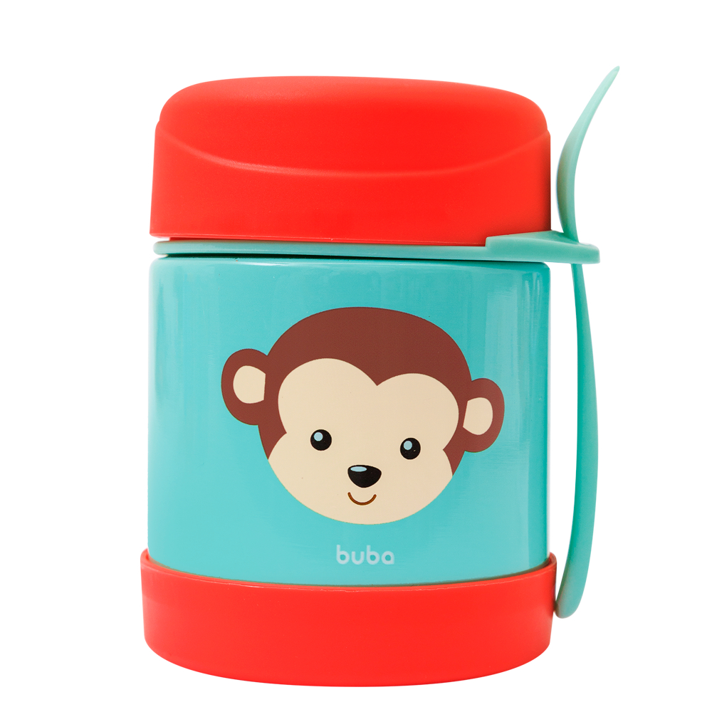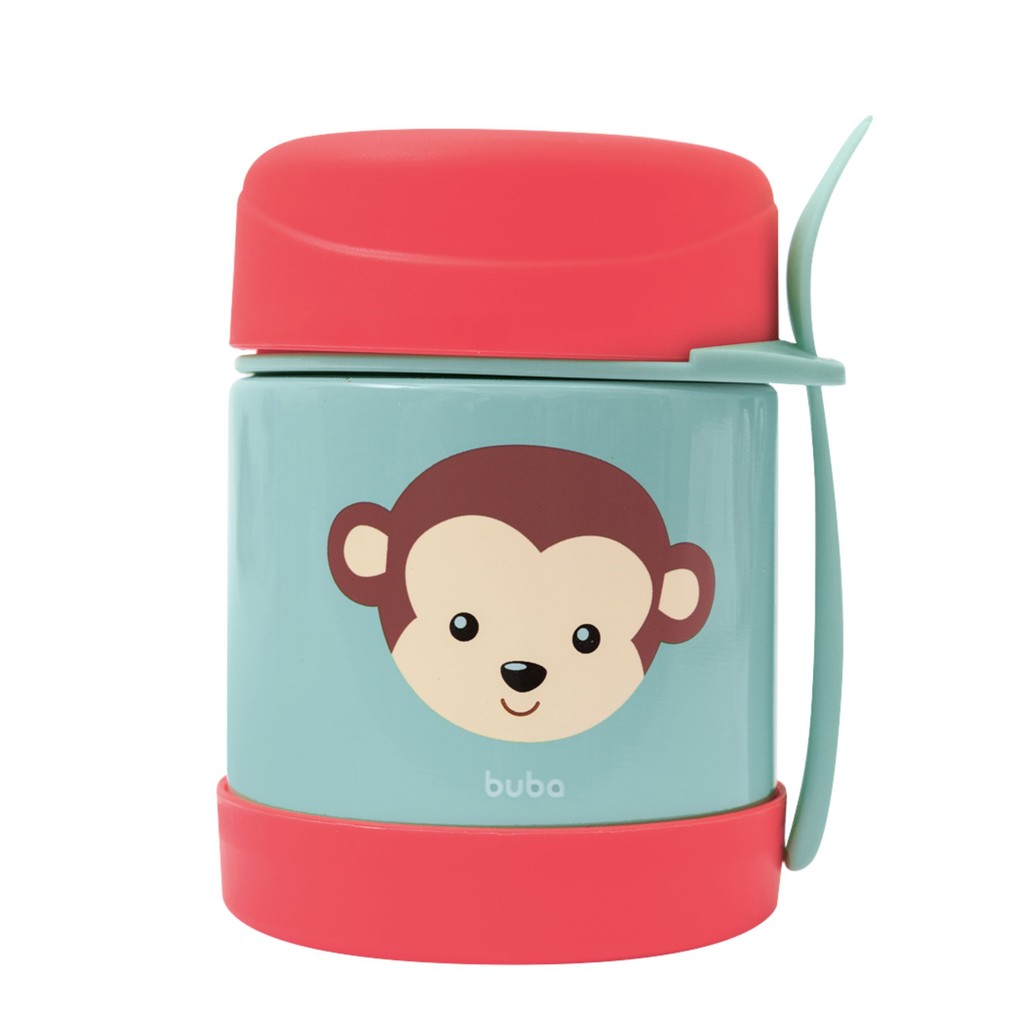Pote Térmico 320ml Infantil Bebê Animal Fun Com Talher Buba