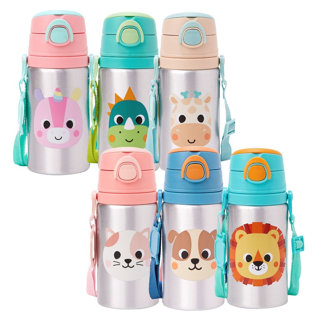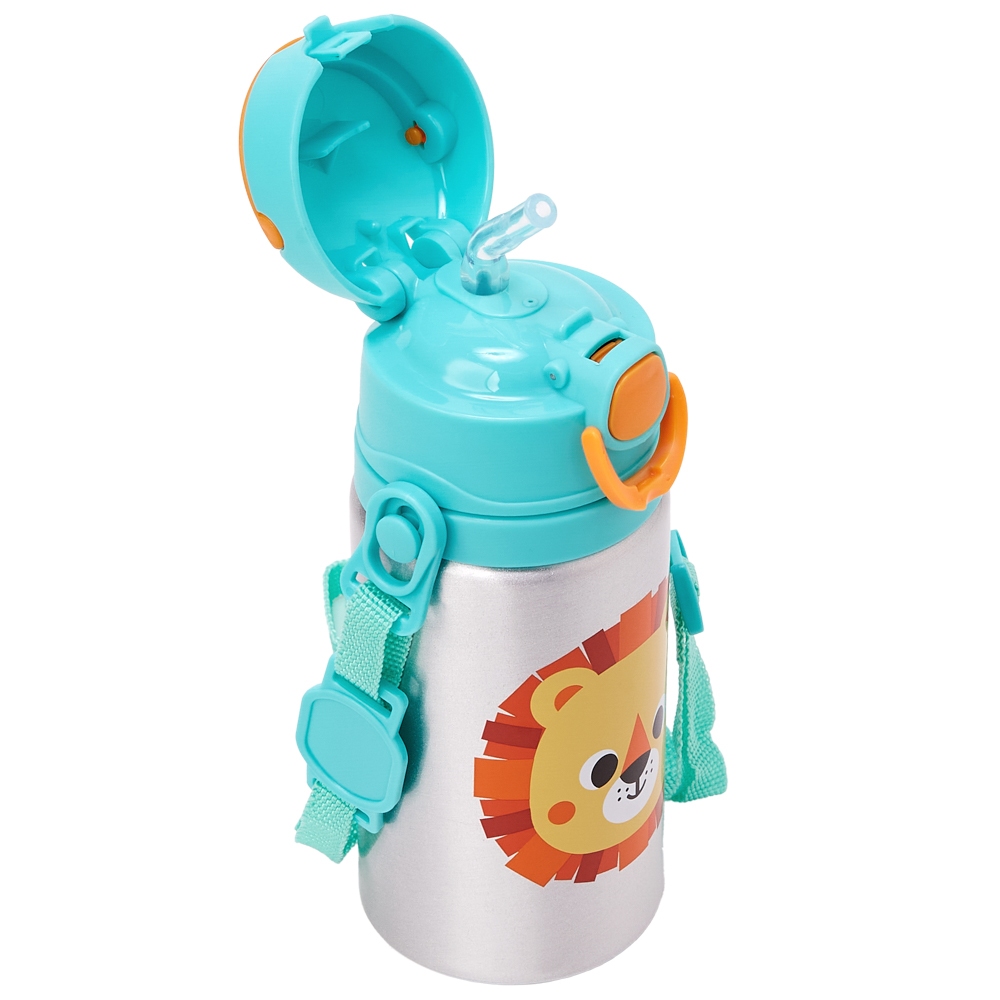 Garrafinha Infantil Buba Zoo Alumínio 450ml com Canudo e Trava