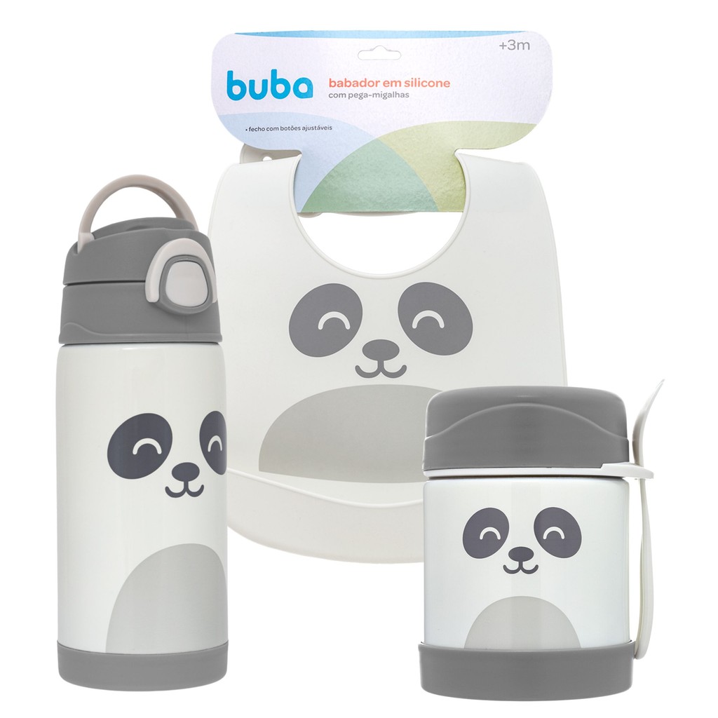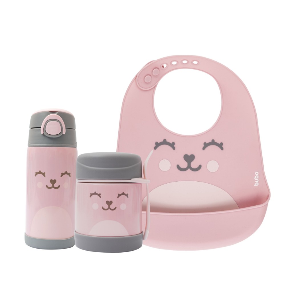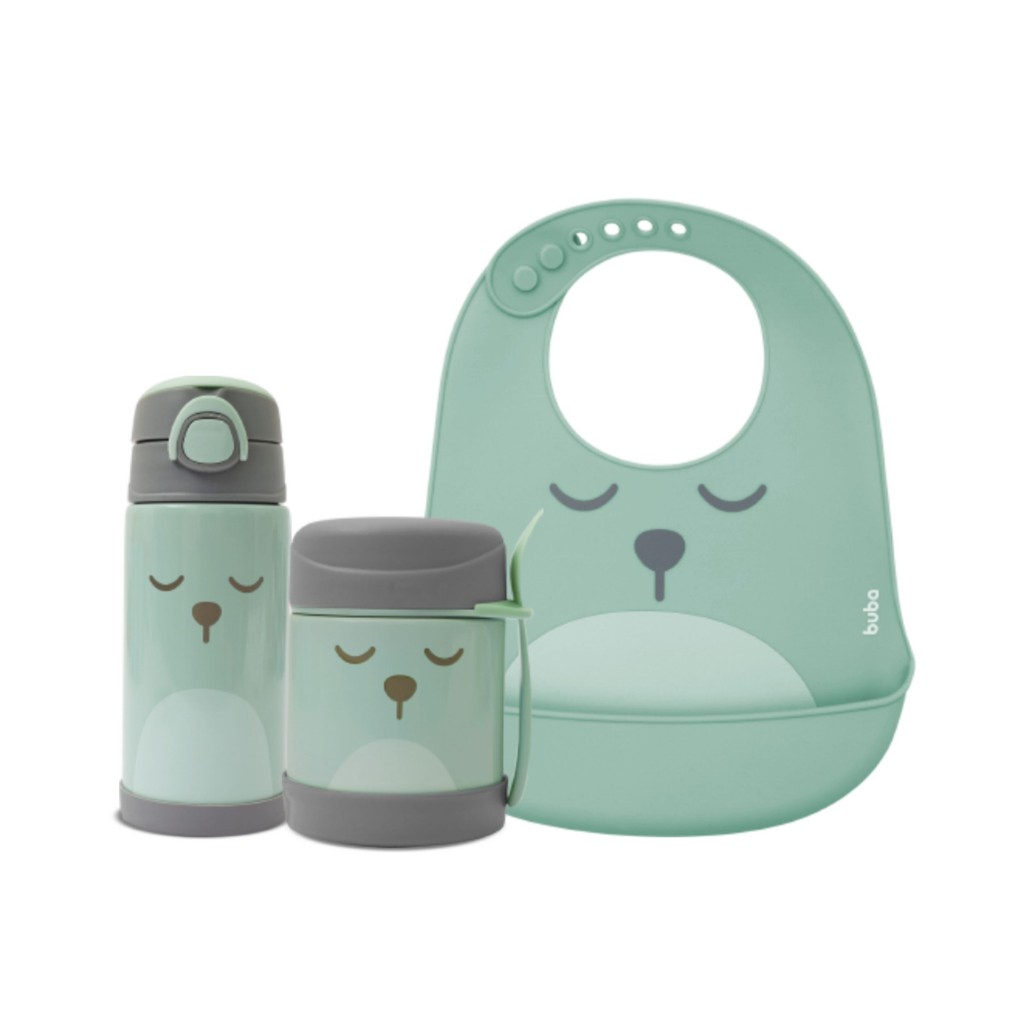 Kit Alimentação Bebê – Pote Térmico, Garrafa Térmica e Babador de Silicone Gumy Buba