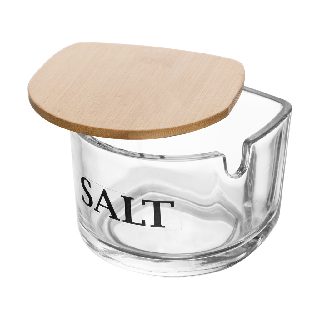 Saleiro de Vidro com Tampa de Bambu 10x10x8cm - Wolff