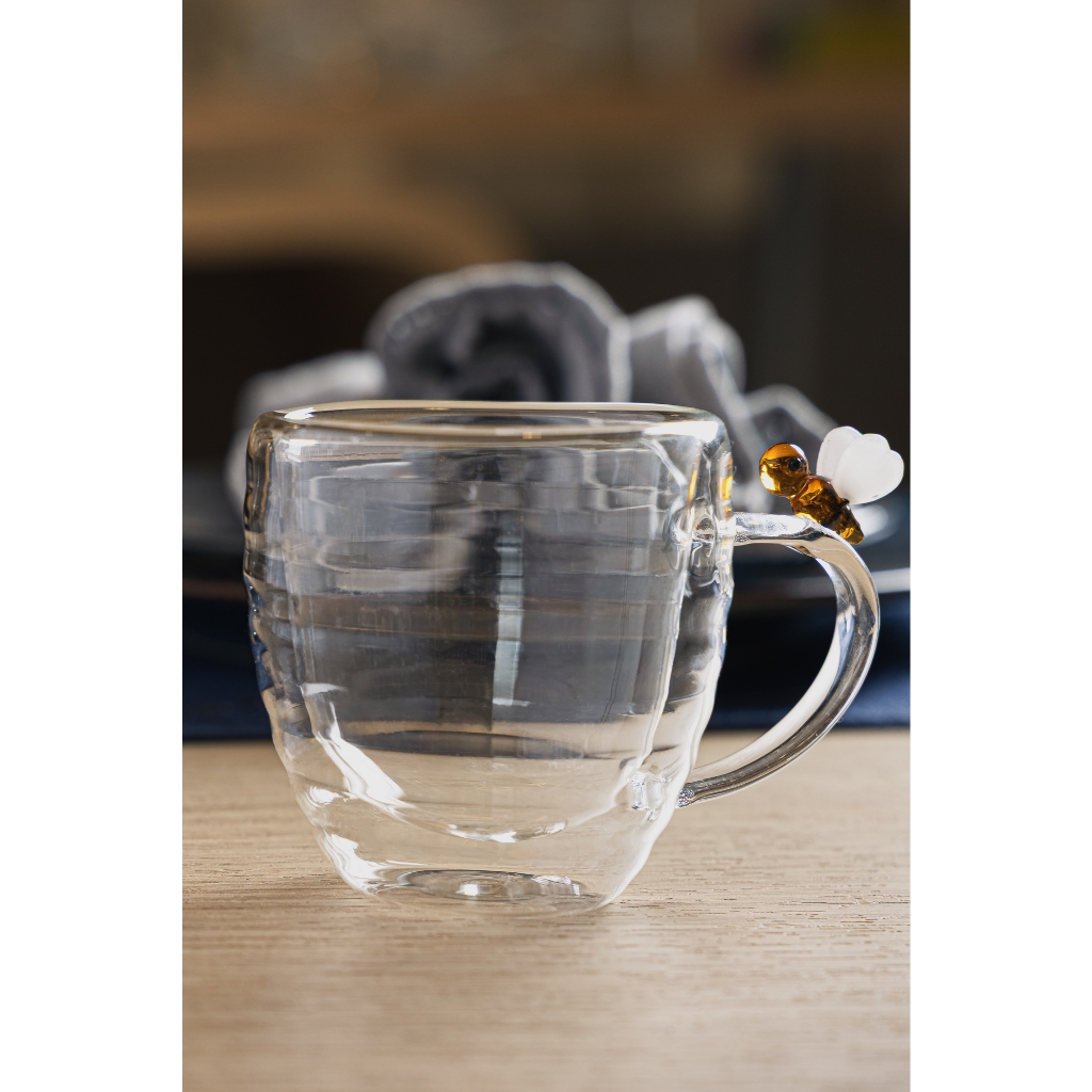 Conjunto de Xícaras Café e Chá, Açucareiro e Meleira de Vidro Borossilicato Lovely Bee 500ml – Lyor
