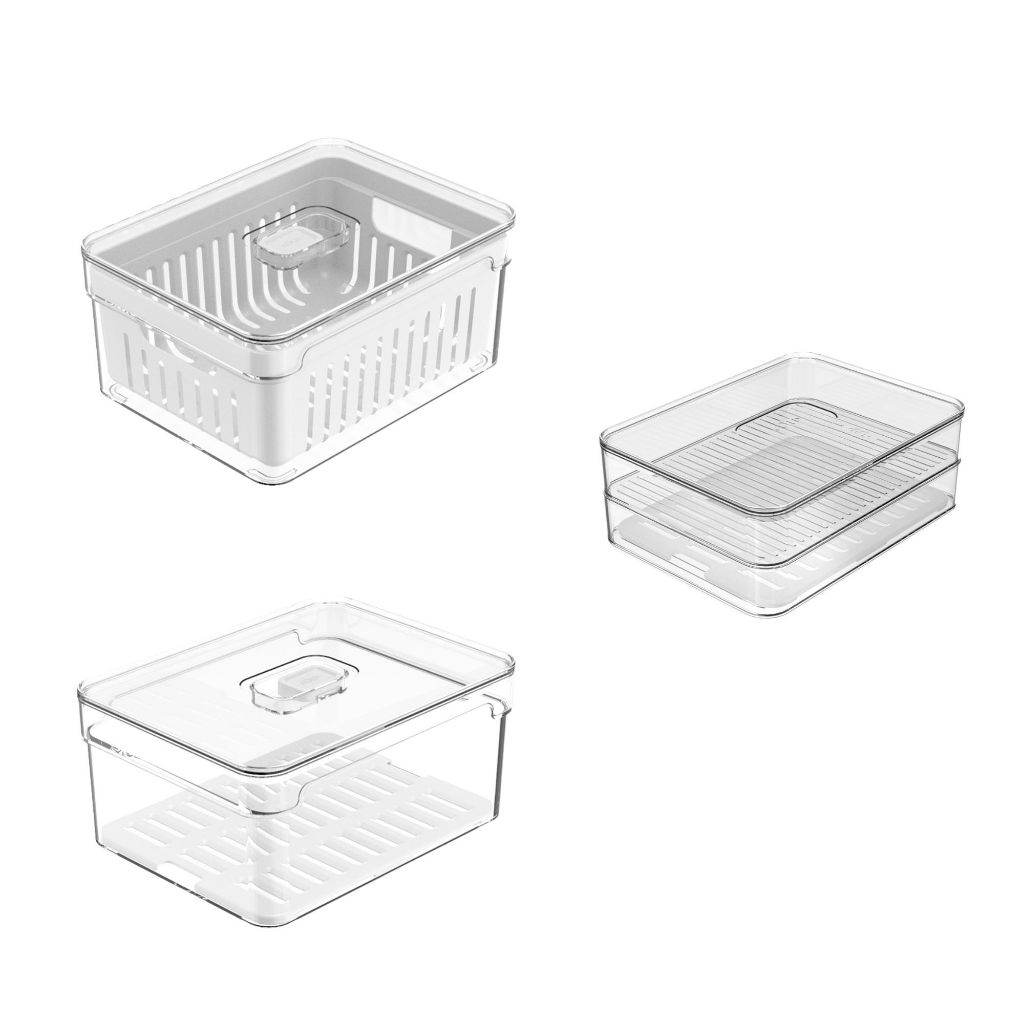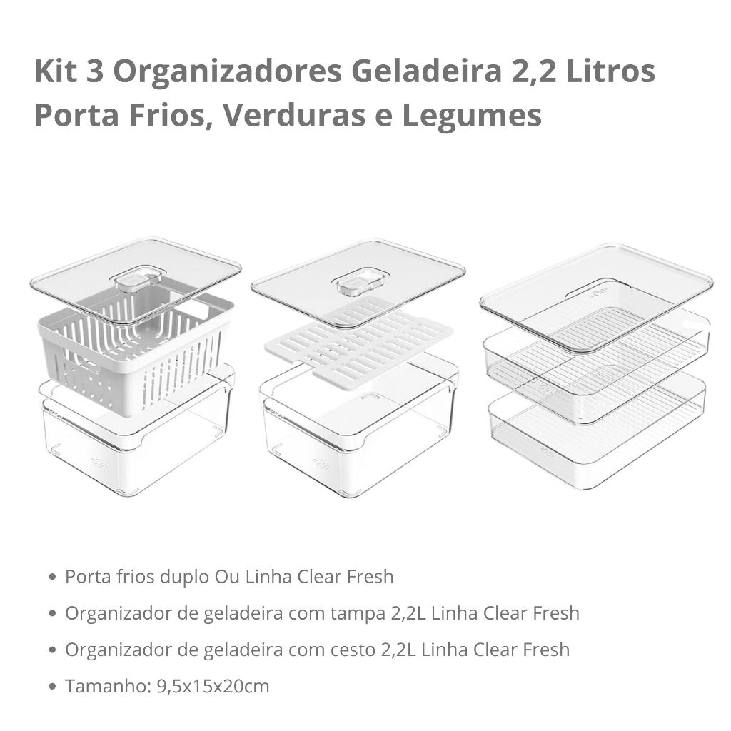 Kit 3 Organizadores de Geladeira - 20x15x9,5cm - Porta Frios, Verduras e Legumes – Linha Clear Fresh | OU