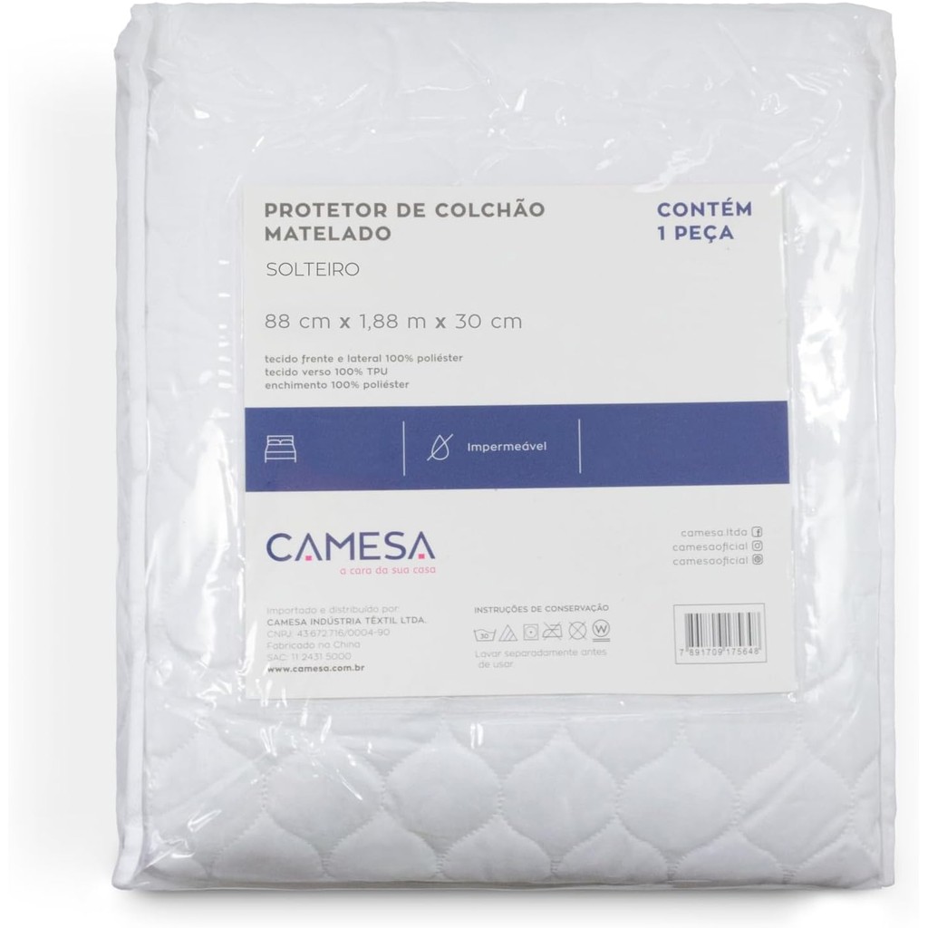 Protetor De Colchão Matelado Impermeável Solteiro 88x188x30 Branco Camesa