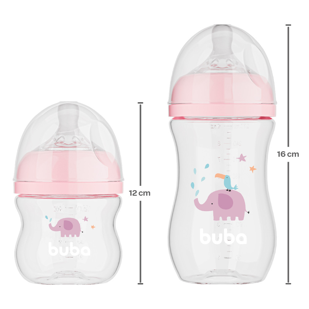 Kit 2 Mamadeiras Buba Easy Flow Anticólica – 120 ml e 270 ml – Elefante Rosa