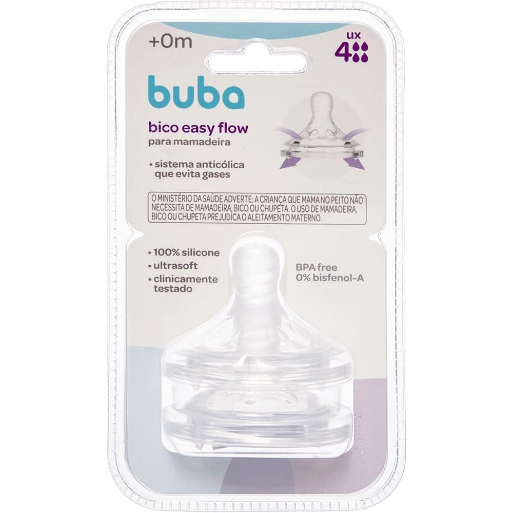 Bico Mamadeira Buba Anticólica Easy Flow | Fluxo 1 (+0m) e Fluxo 2 (+2m) Silicone Ultrasoft