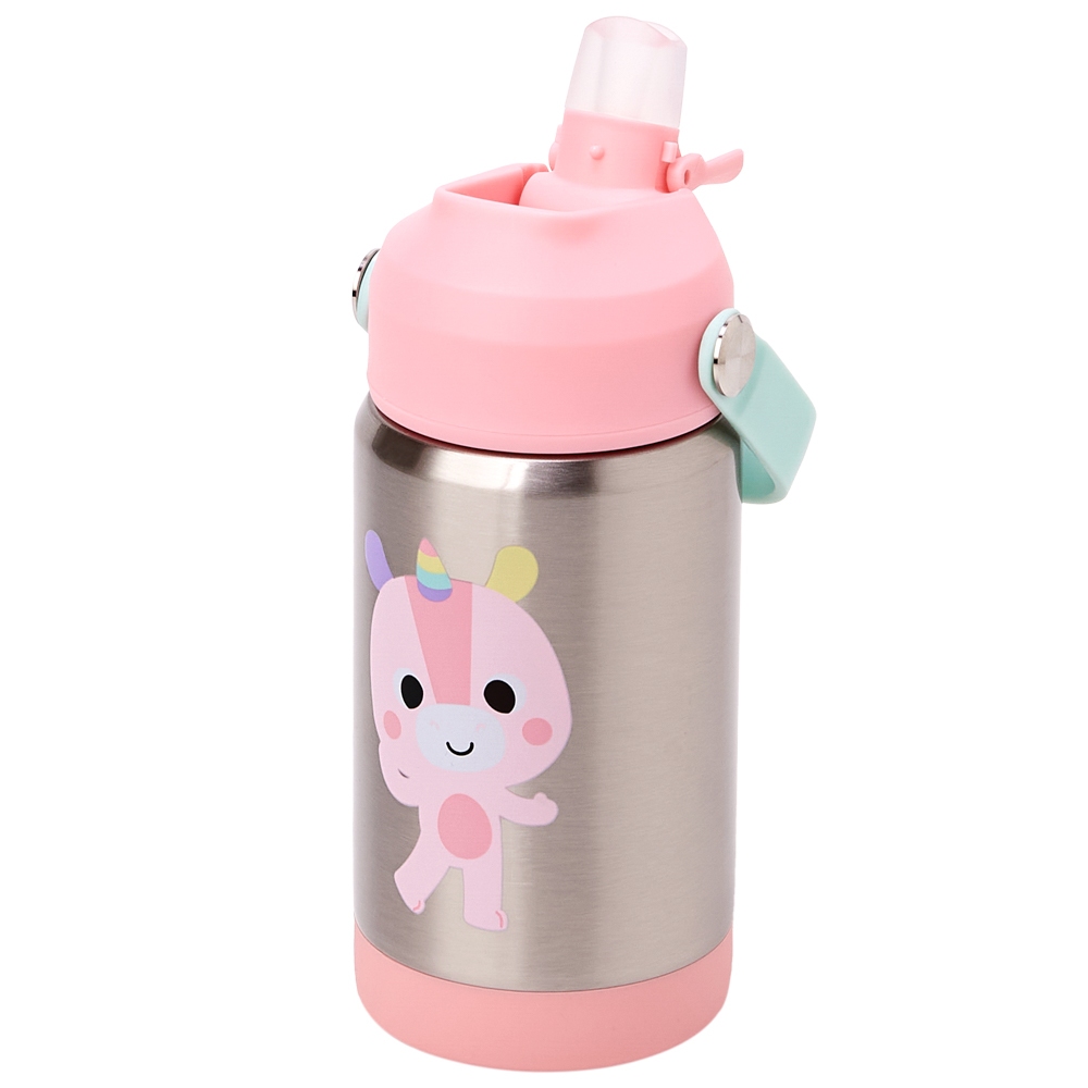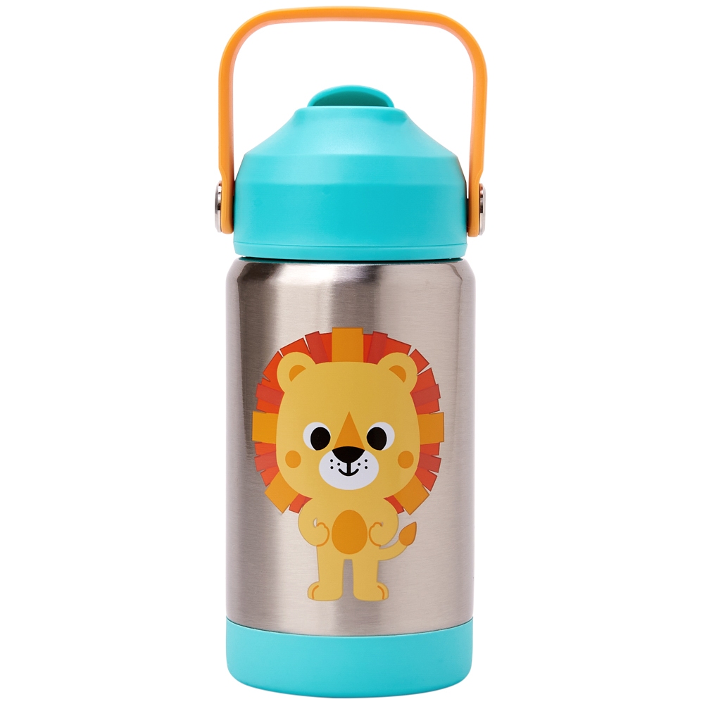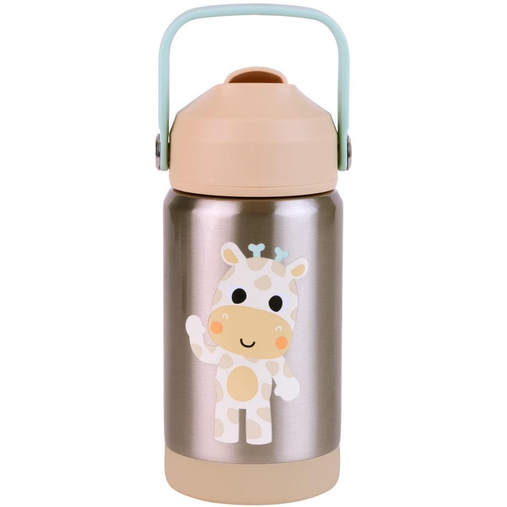 Copo Garrafinha Térmica Infantil Inox 360ml - Parede Dupla com Canudo de Silicone - Buba Zoo