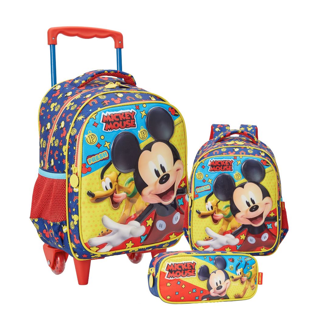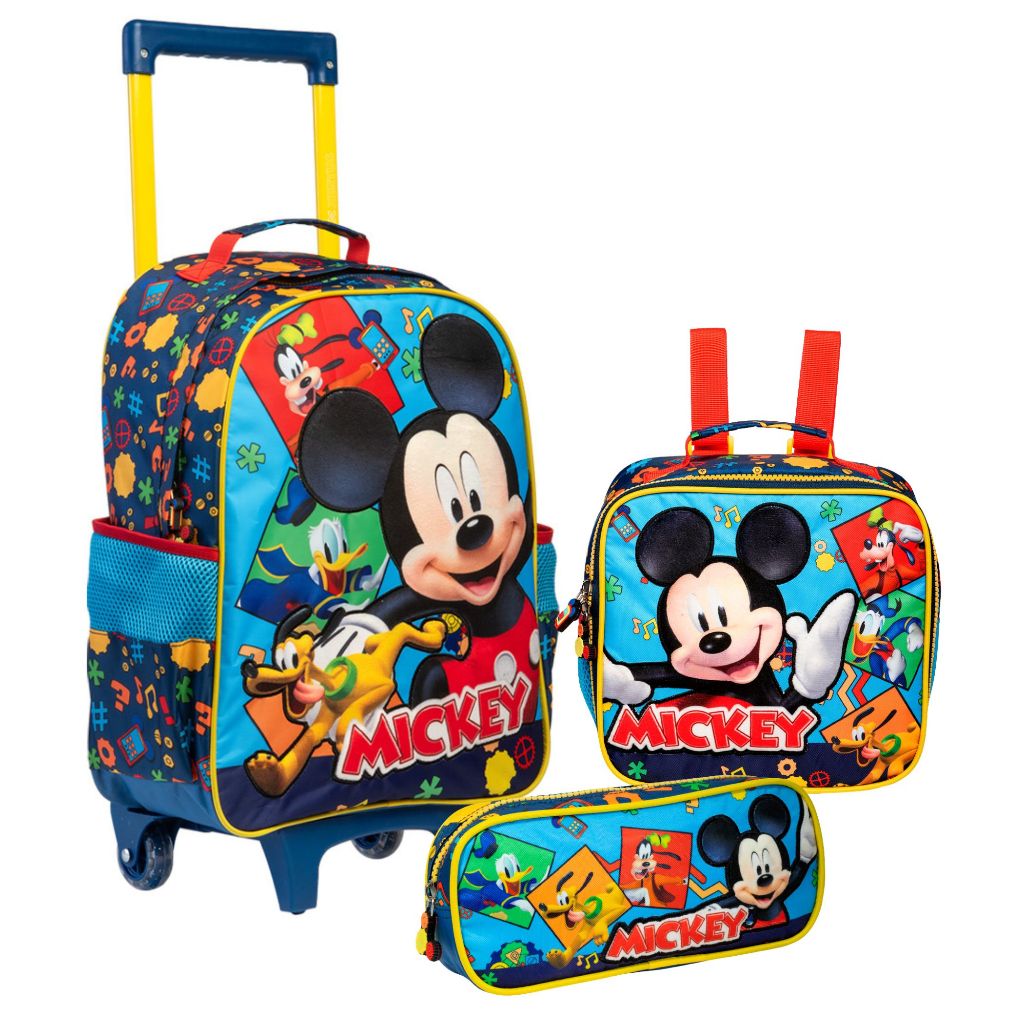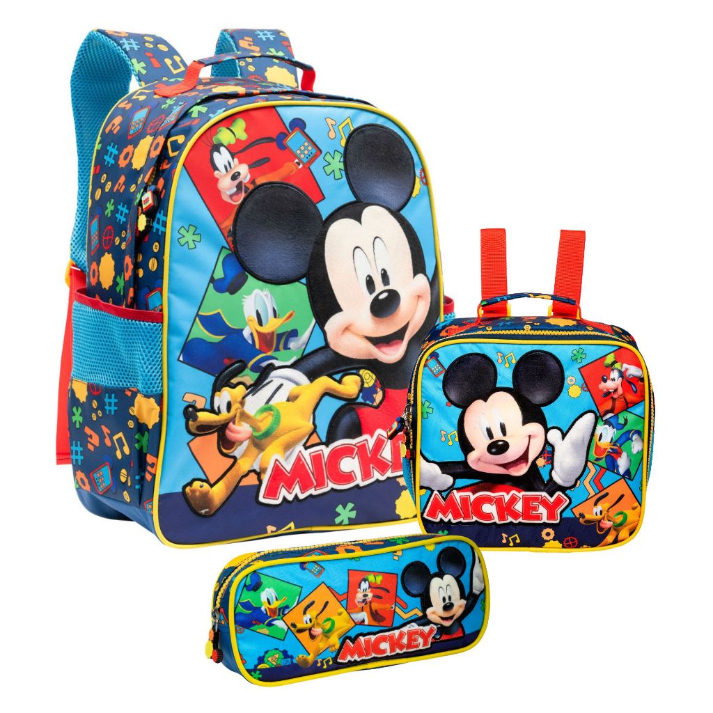 Mochila Escolar Infantil 16", Lancheira e Estojo Disney Mickey Mouse Original Y1 / R - Xeryus